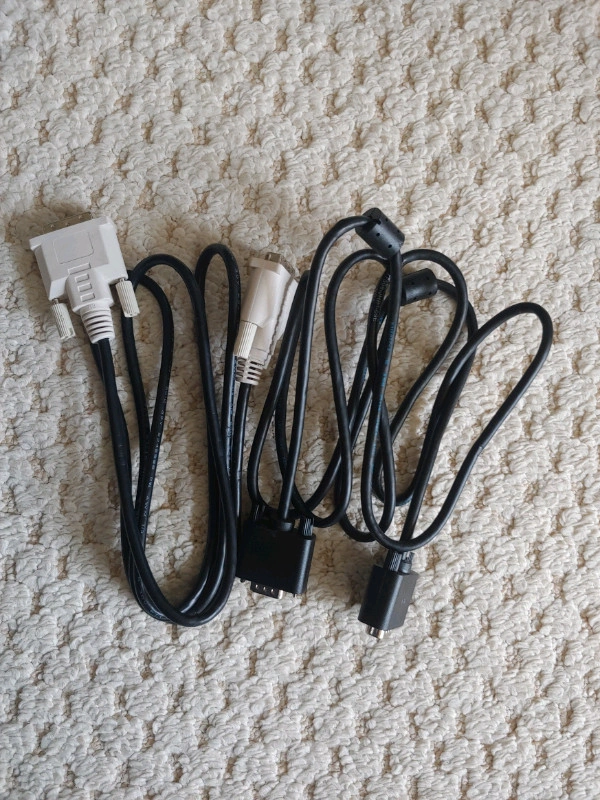 VGA male to VGA male cable (Used) $3 each DVI male to DVI male cable (Used) $4 each HDMI male to HDMI male cable (Used) $2 each HDMI male to HDMI male cable (New) $3 each