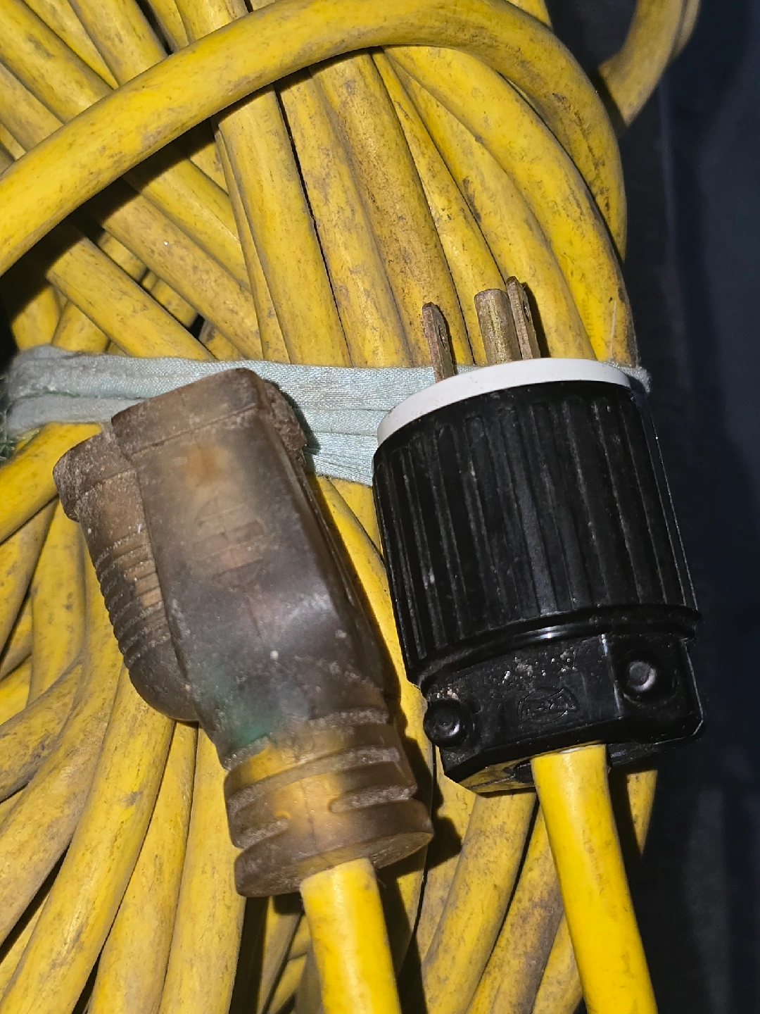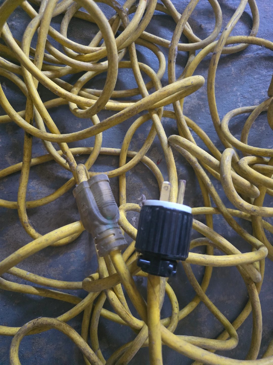 The Yellow ext cable 100-ft. SJTW Lighted End other LKT7515P heavy duty plug. Extension Cord is designed for durability. Rare used not damange. More flexible and abrasion resistant at any temperature than standard vinyl compounds. new 95$ but giving only 50.