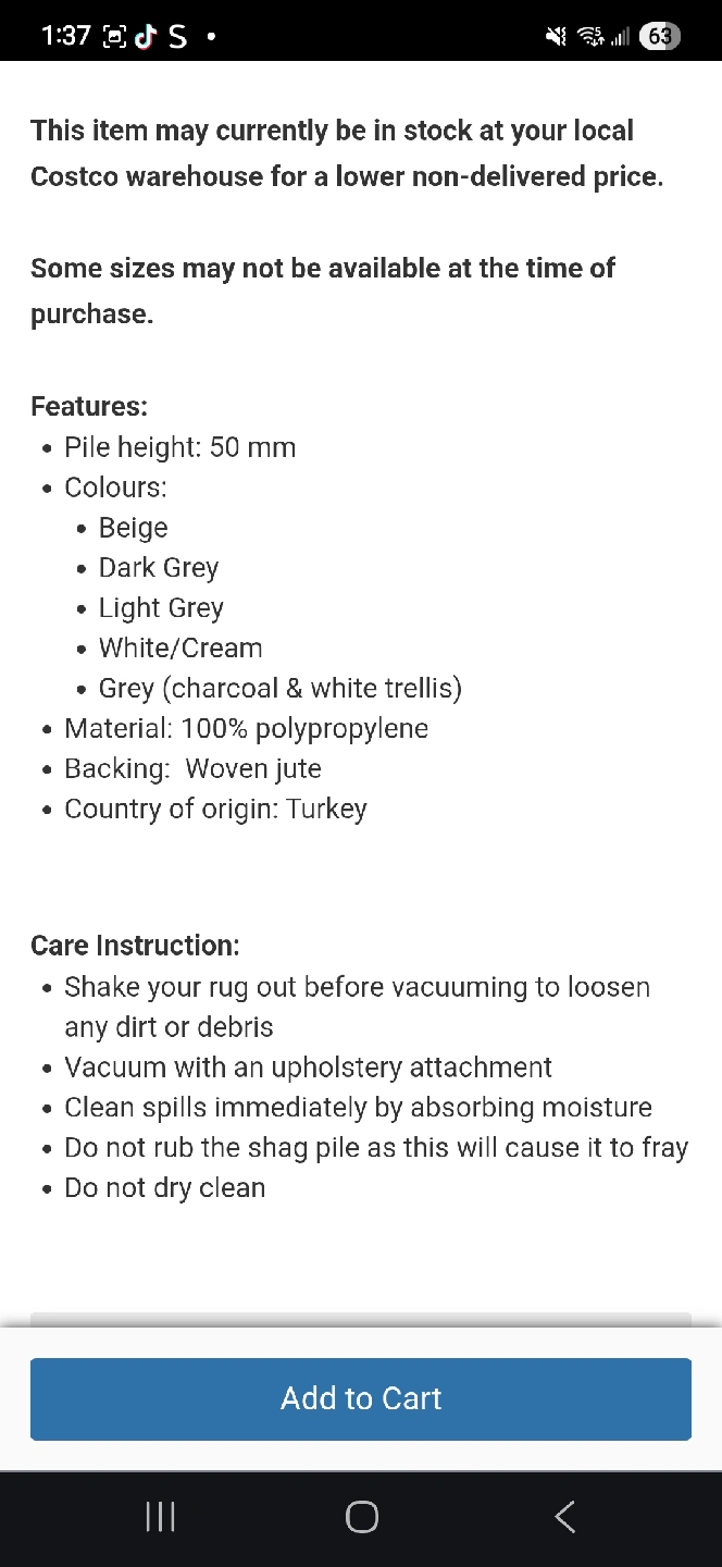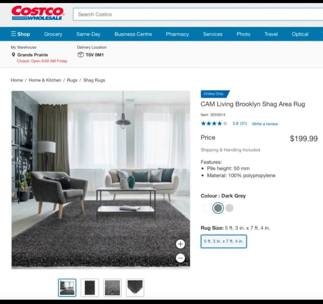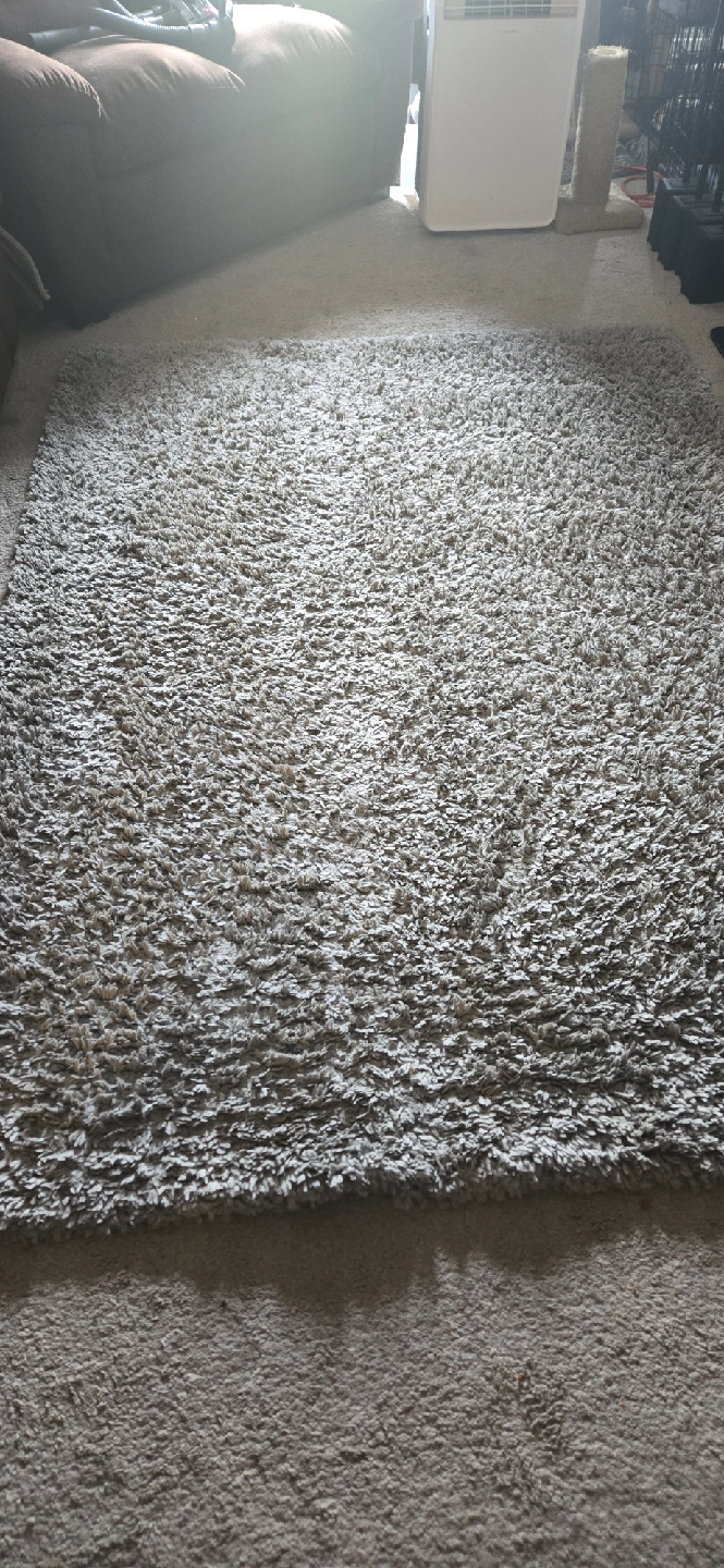 Selling 2 CAM Living Shag Area Rug! It's in Dark Grey and Light Grey measures 5 ft. x 7 ft. The pile height is 50 mm and it's made of 100% polypropylene. Originally bought for $199.99 from Costco!