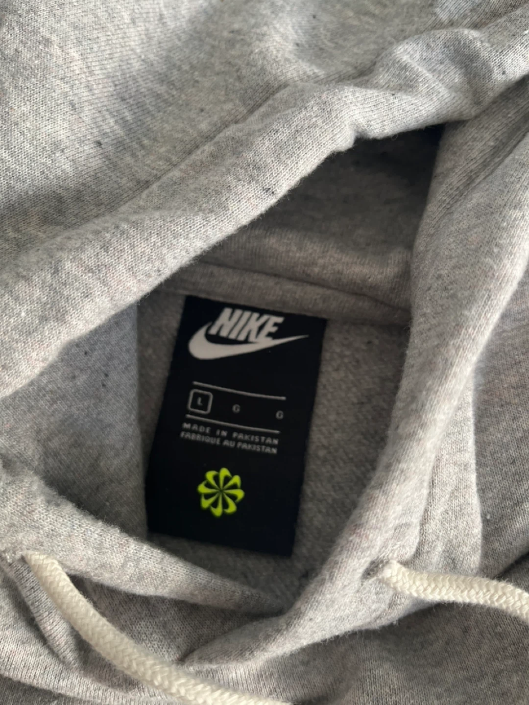 Selling a Nike grey hoodie in size large. It's in great condition and ready for a new home! The hoodie features a classic design with the Nike logo. Made in Pakistan.