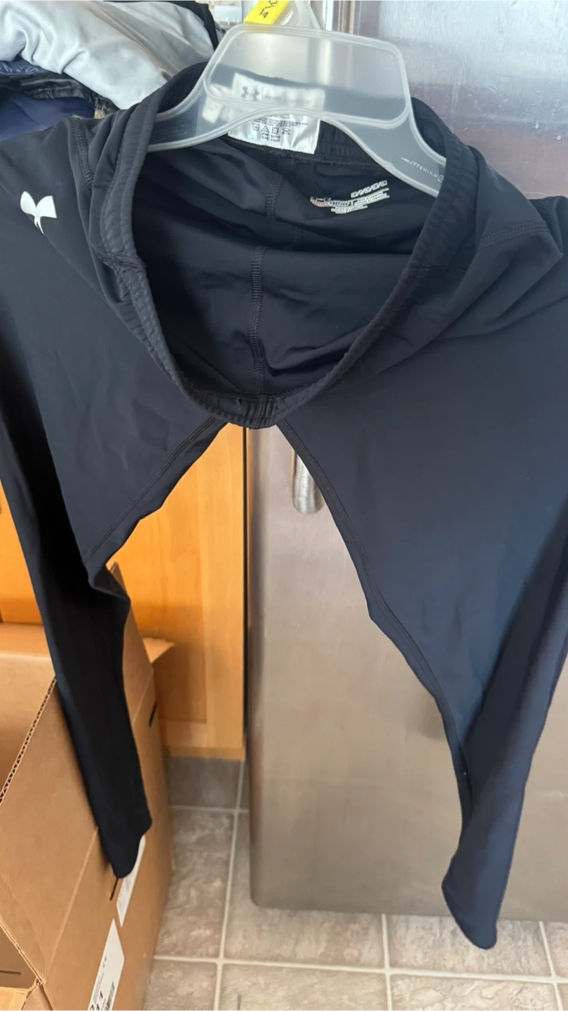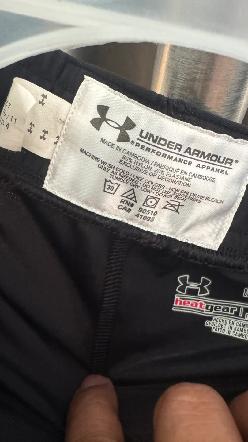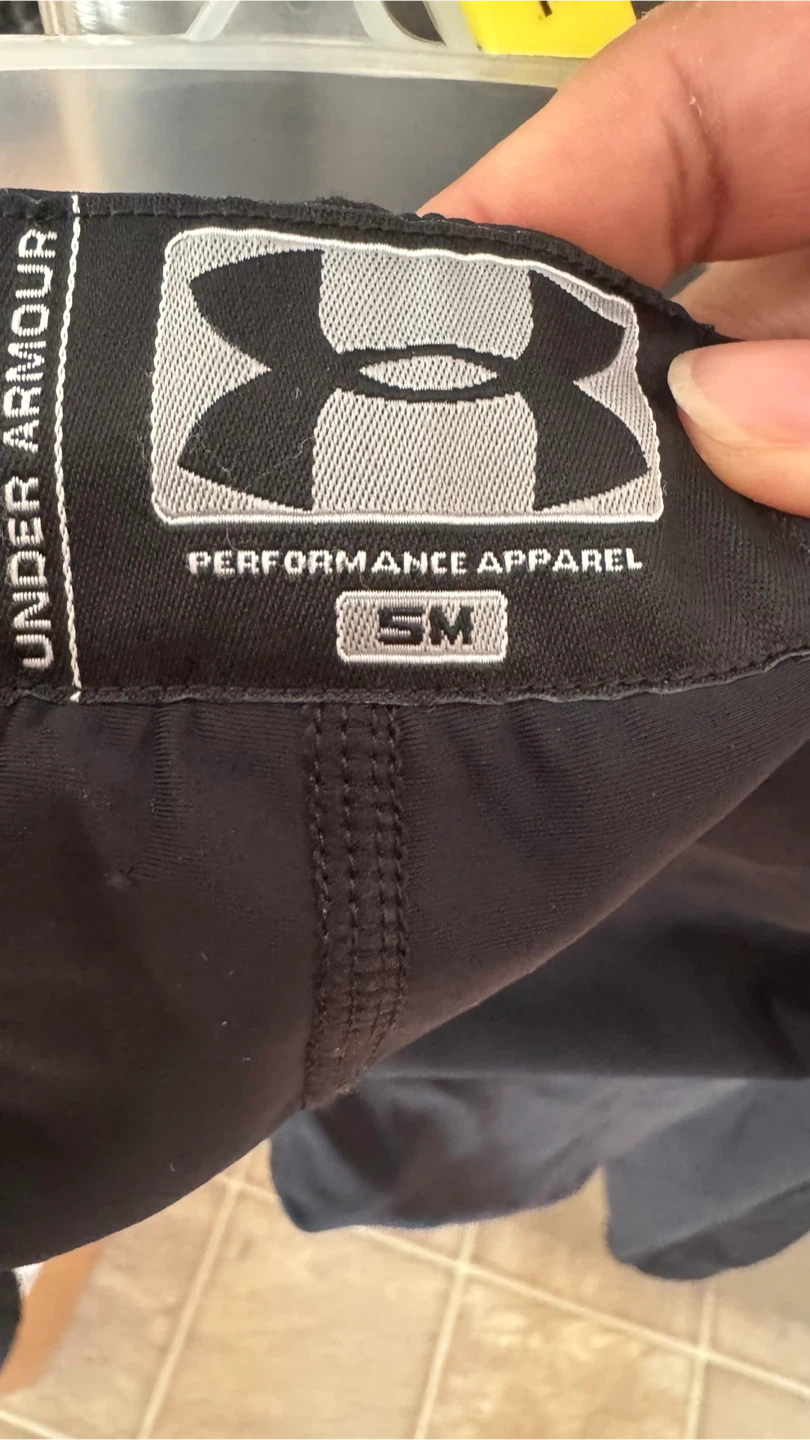 Selling a pair of Under Armour leggings in black. They are a size small and made from a blend of 80% nylon and 20% elastane. Great for workouts or everyday wear!