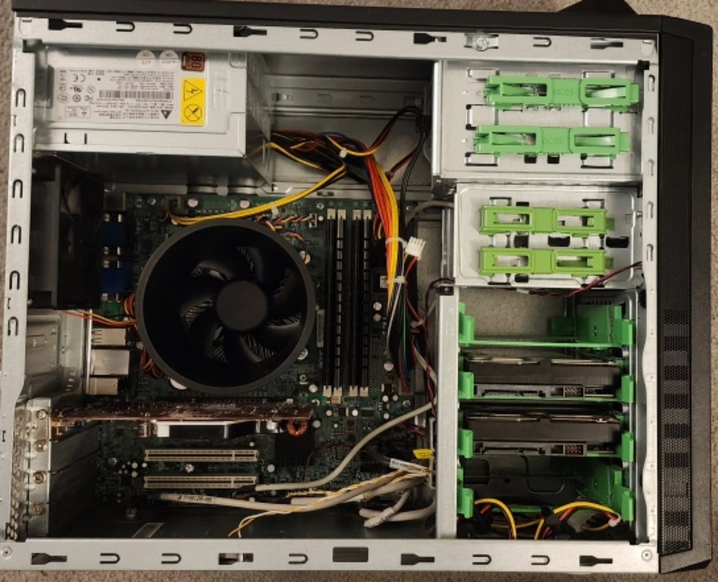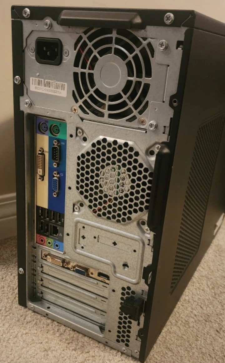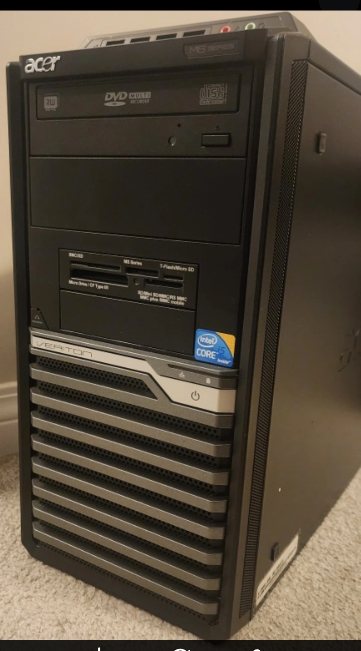 Selling an Acer Veriton M6 Series desktop PC. It features an Intel Core i5 processor and 24GB RAM. This PC has multiple drive bays for storage expansion and various ports on the back for connectivity. Great for everyday use or upgrading!
