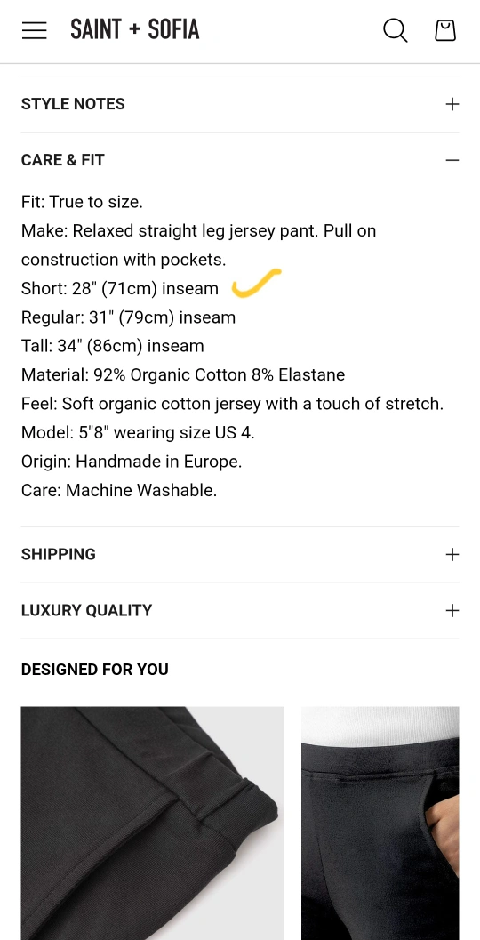 Selling a pair of Saint + Sofia Apartment Pants in black, size US 4, short length (28 inch inseam).