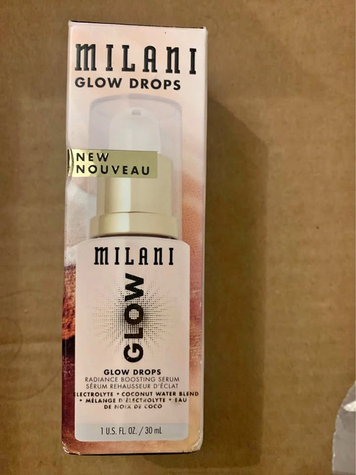 Milani Glow Drops Radiance Boosting Serum! It's brand new and in its original packaging. This serum is designed to give your skin a radiant glow. It contains a blend of electrolytes and coconut water. The bottle contains 1 U.S. fl oz / 30 ml