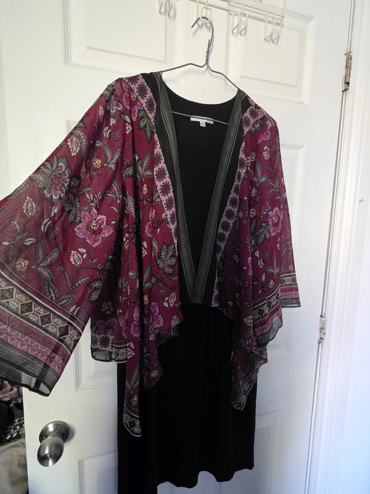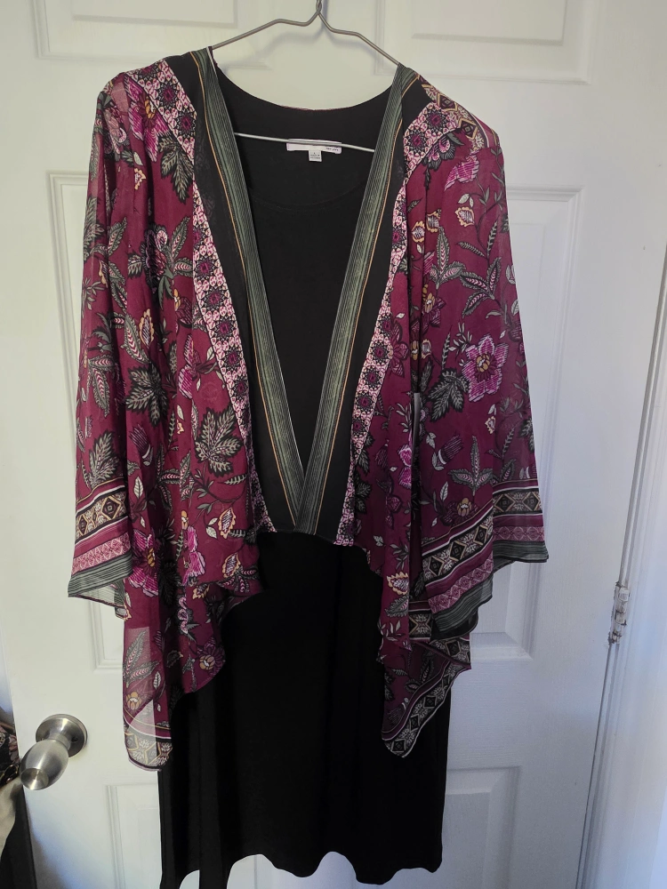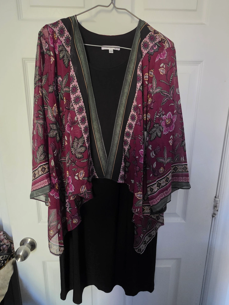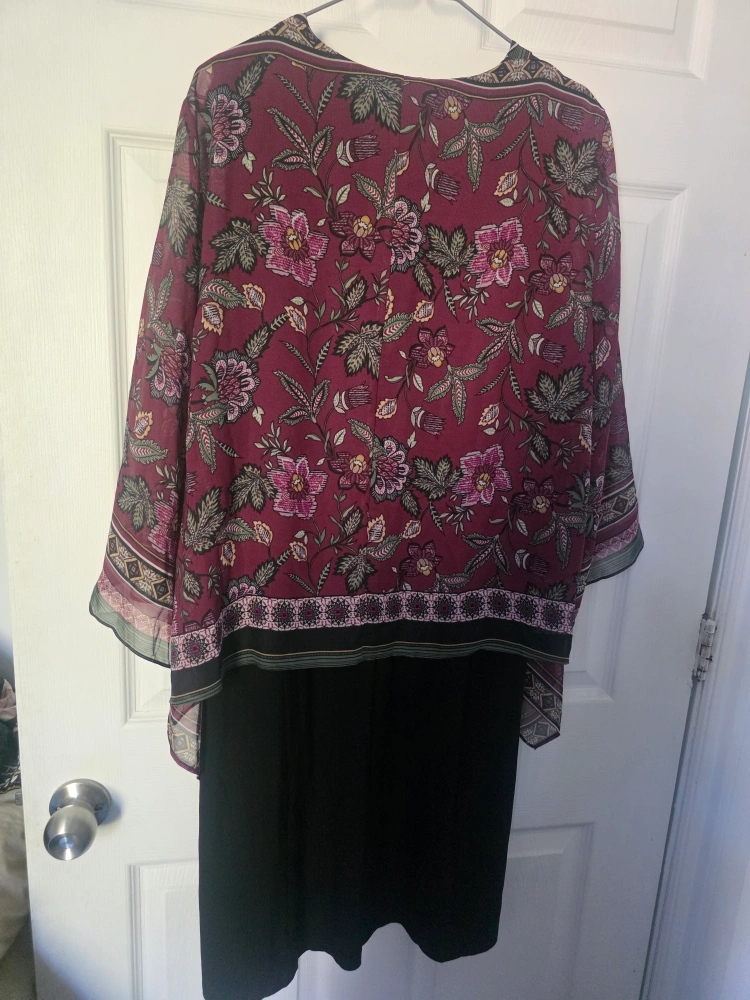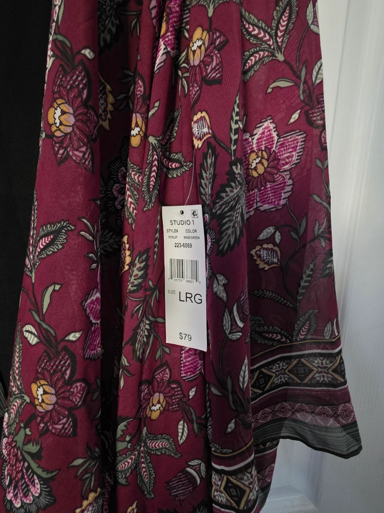 Studio 1 dress in a size large. It features a lovely floral pattern with a wine/green colour scheme. Original price $75.