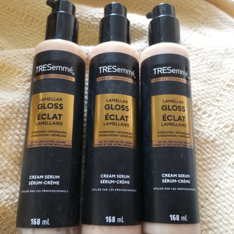 Three bottles of TRESemmé Lamellar Gloss Éclat Cream Serum, 168 mL each