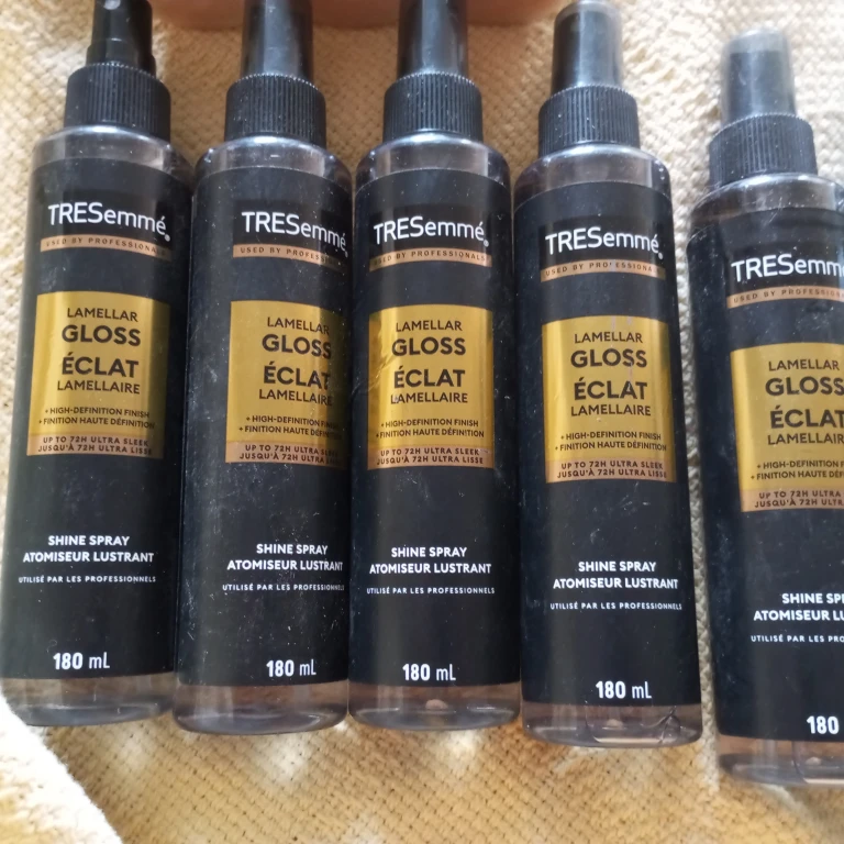 Nine bottles of TRESemmé Lamellar Gloss Éclat Shine Spray, 180 mL each.