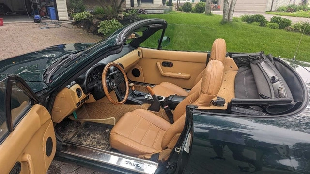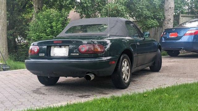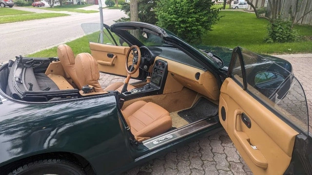 Mazda Miata British Racing Green Special Edition, #1158 of 4000 made. Features a new timing belt, new radiator, and reupholstered seats. Includes a NARDI wooden steering wheel and a new Android stereo with GPS, CarPlay, and Android Auto, plus upgraded speakers and amplifiers. It has a performance exhaust (installed by previous owner). I am the second owner. The AC is not currently working, and the factory alarm is also not working. This is a US model, so mileage is in miles (235,000 km). I don't need to sell it, so please, no lowball offers. If the ad is still up, it's available. Thanks for not wasting my time.