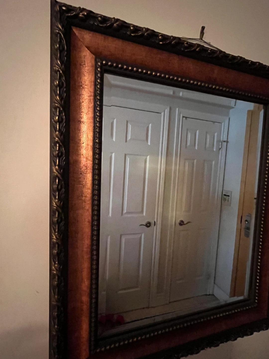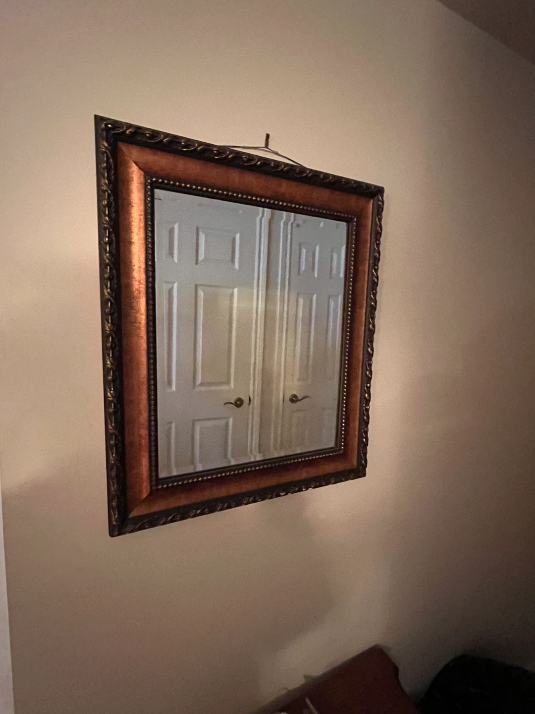 Selling a lovely wall mirror with an ornate frame. It's in great shape and ready to add a touch of elegance to your home.