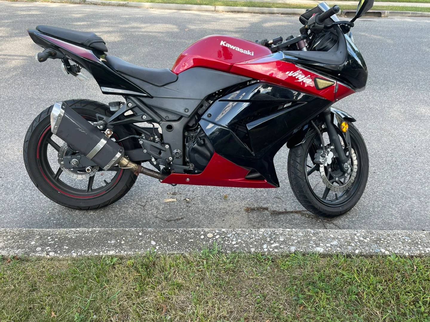 Selling a Kawasaki Ninja motorcycle in red and black. It's in good condition and ready to ride! Brand new tires it’s a great bike and you will enjoy it.