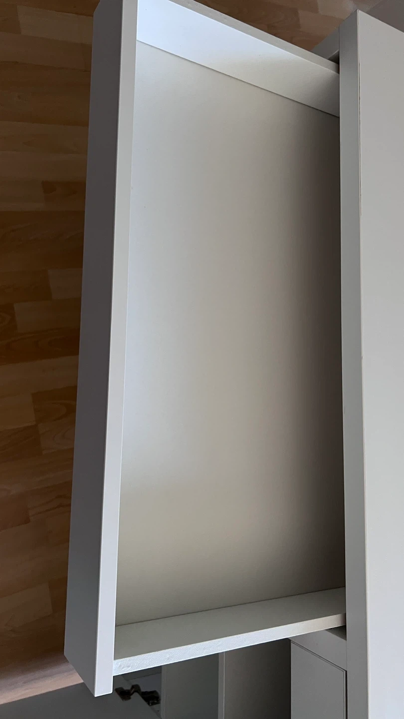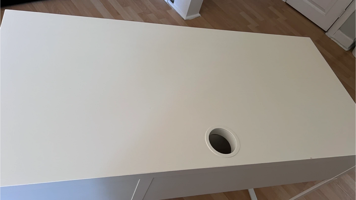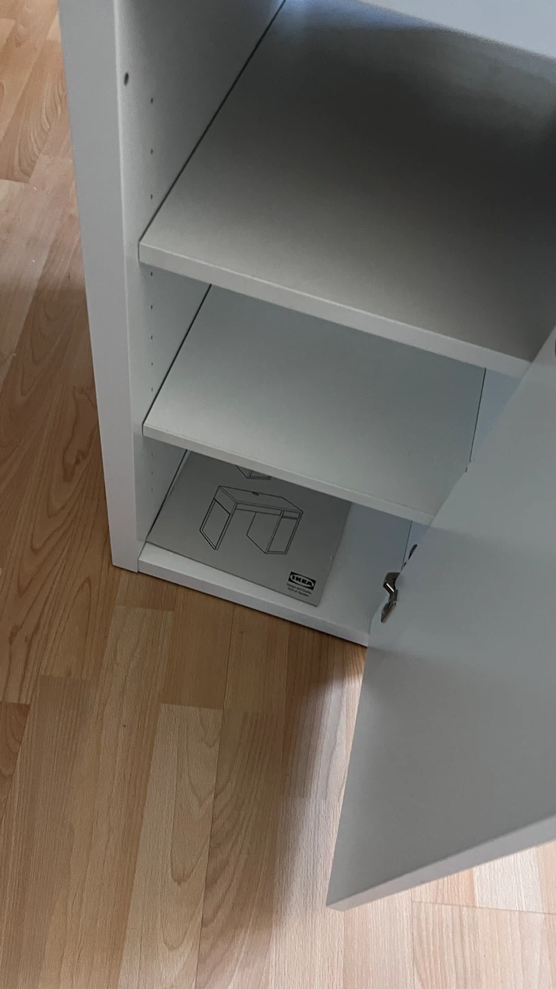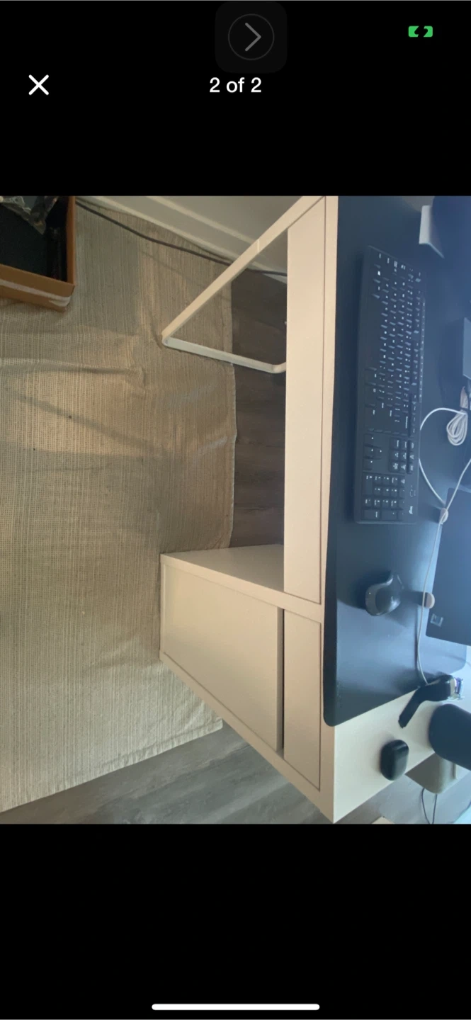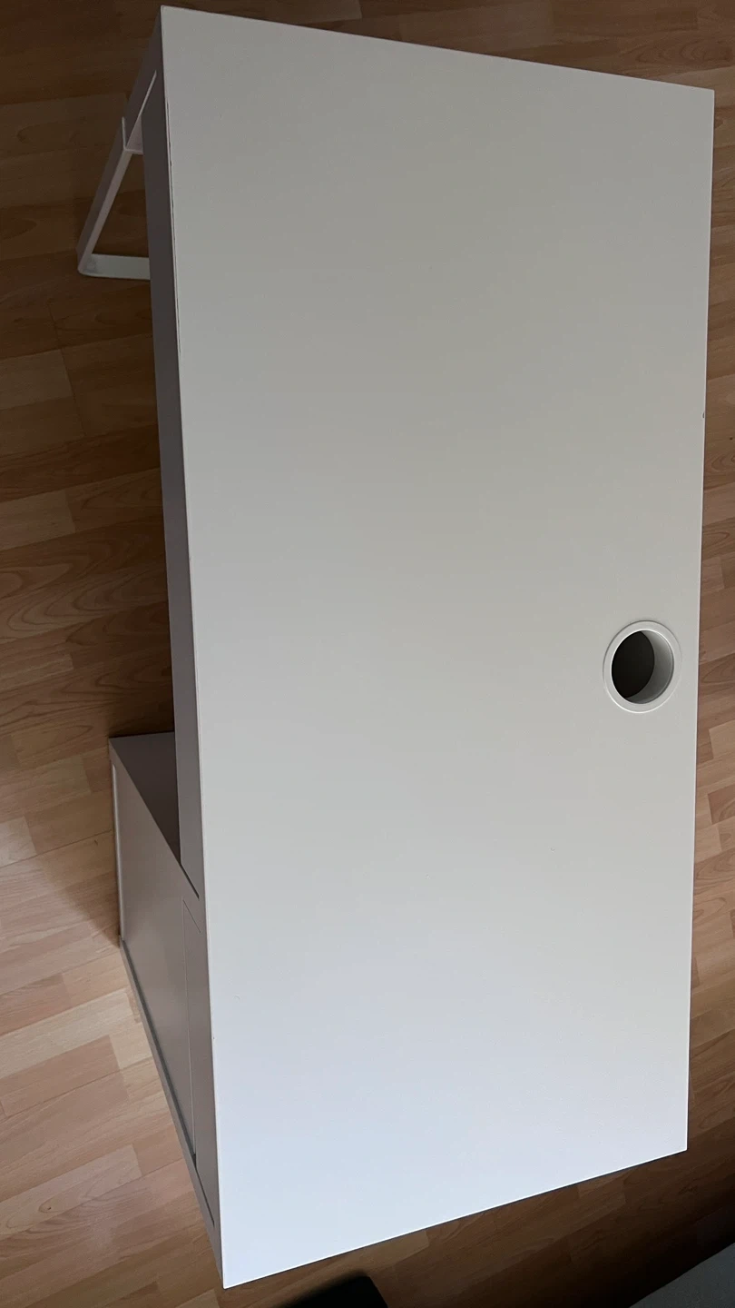 Selling a white IKEA desk that's in great shape! It comes with built-in storage, including shelves and a drawer, perfect for keeping your workspace tidy and organized