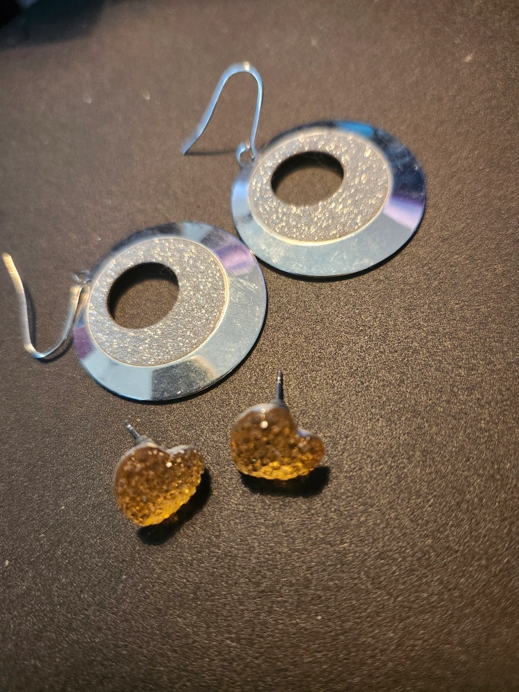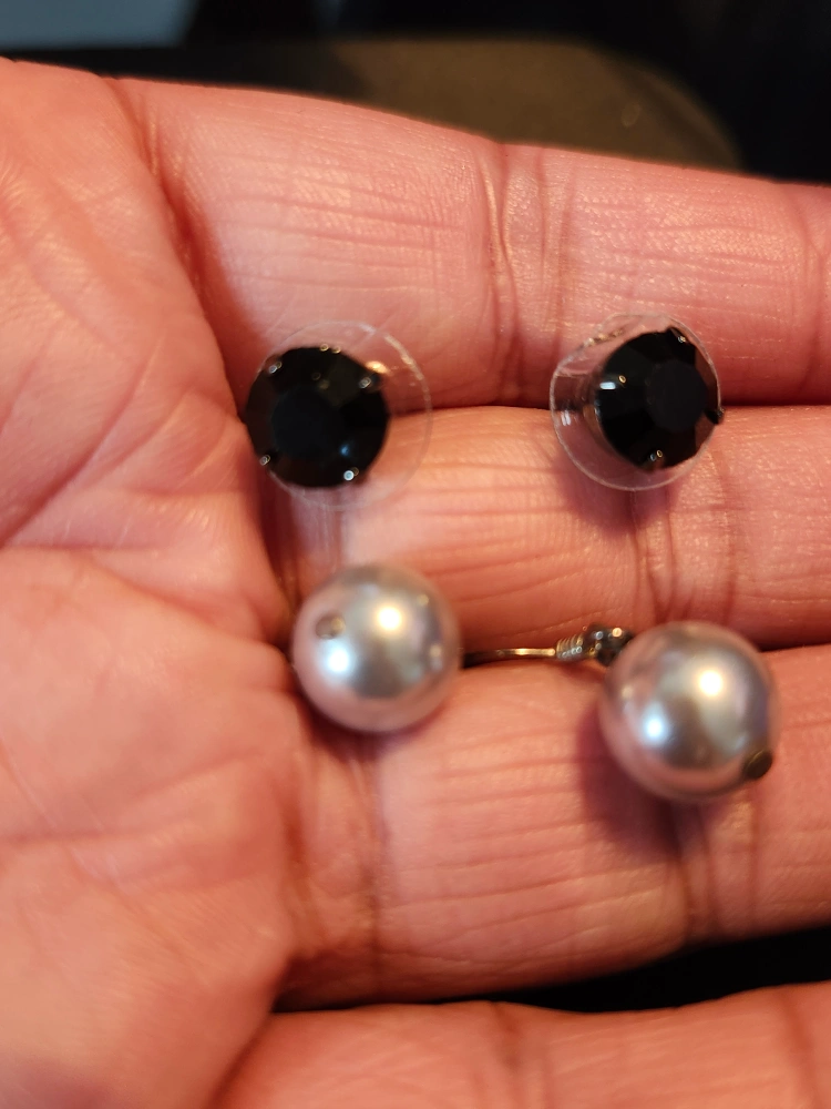 Assorted Earrings - Silvertone, Yellow Heart, Grey Pearl, Black