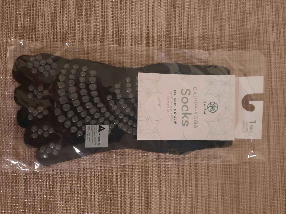140Selling a brand new pair of Gaiam Grippy Yoga Socks! These socks are designed to provide all grip and no slip, making them perfect for yoga, pilates, barre, and dance. One size fits most.