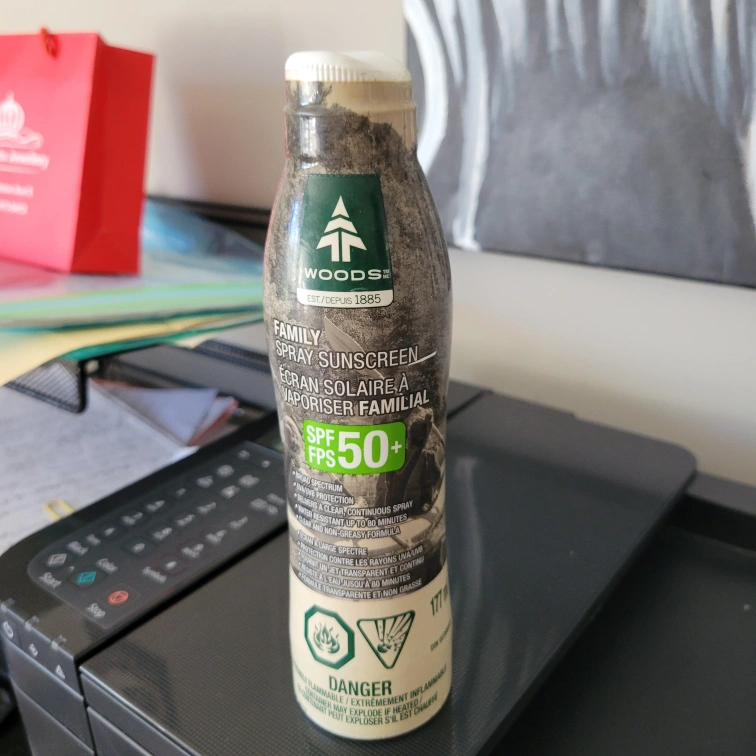 Woods Family Spray Sunscreen with SPF 50+ for broad spectrum protection against UVA and UVB rays