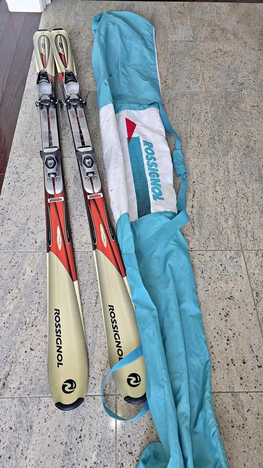 Selling a pair of Rossignol skis (167 cm), made in France, complete with Rossignol Axium bindings and a carry bag.