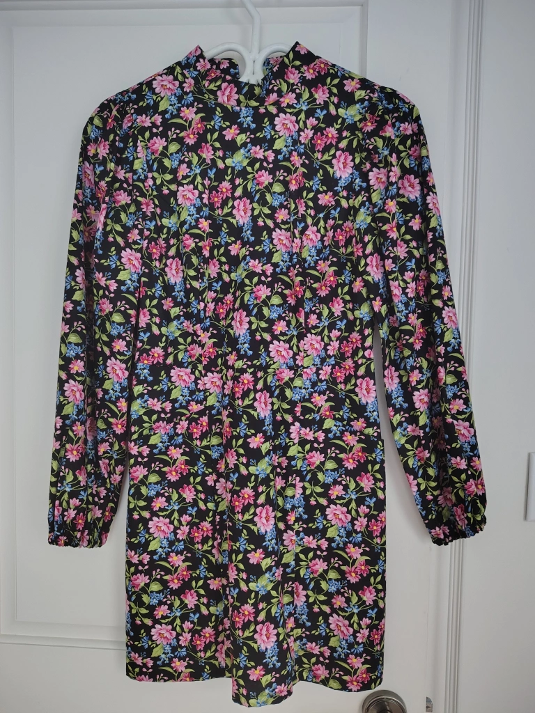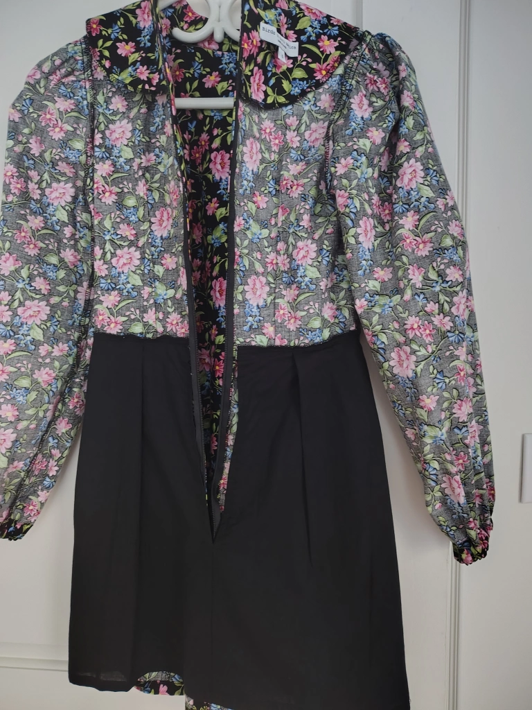 This is a lovely floral dress from Birds of North America in size 4. New and never worn. 100% Cotton, I believe, and Made in Canada. Front pocket detail, elastic cuffs and lining from the waist down are shown in the photos. From my coveted collection to yours! This is a very attractive and flattering style in perfect condition.