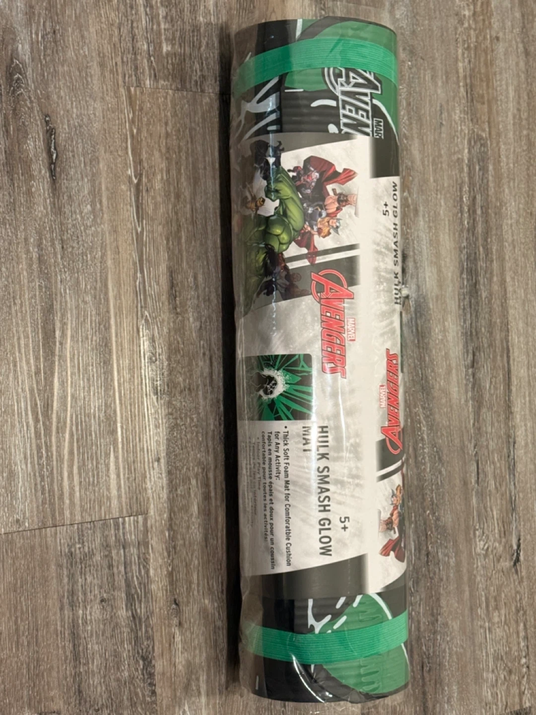 Selling a brand new Marvel Avengers Hulk Smash Glow Mat! It's still in its original packaging. This thick, soft foam mat provides comfortable cushioning for any activity. Great for indoor playtime, camping, outdoor activities, relaxation, and meditation. It also includes a lightweight carry strap for easy transport. Dimensions are 24 inches wide x 60 inches long (61cm x 152cm)
