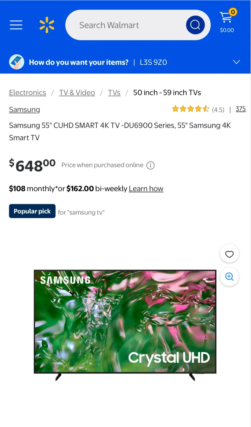 Band new in box Samsung Crystal UHD DU6900 55" TV.