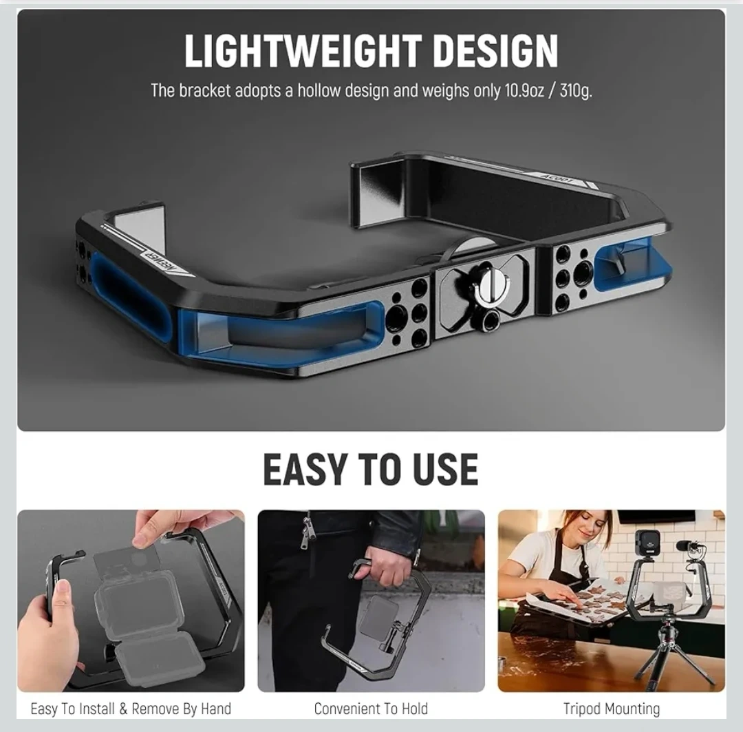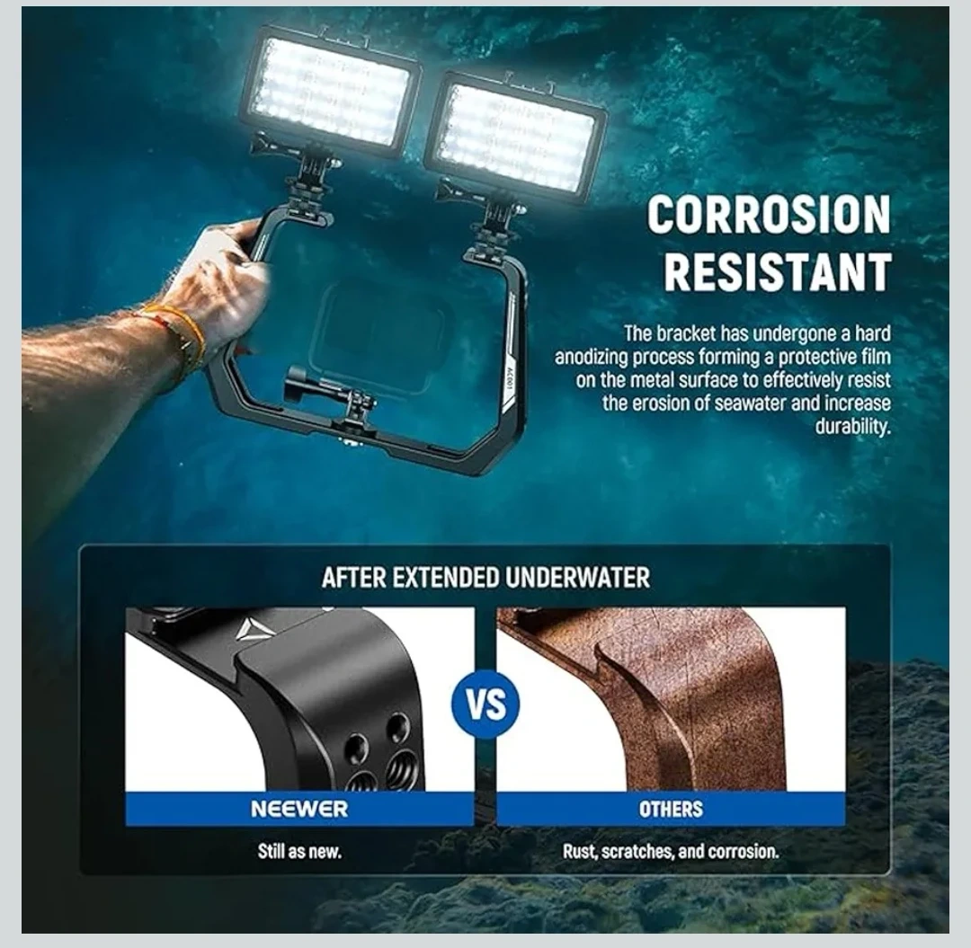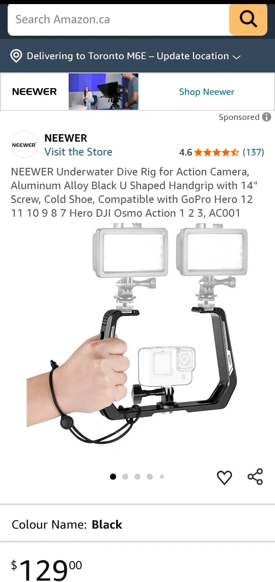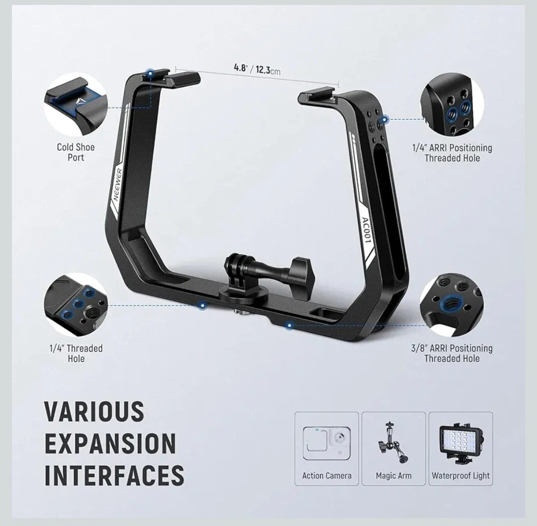 Enhance your underwater photography with this Neewer Underwater Dive Rig for Action Cameras, crafted from durable black aluminum alloy in a U-shaped handgrip design, featuring a 1/4" screw and cold shoe, compatible with GoPro Hero 12/11/10/9/8/7 and DJI Osmo Action 1/2/3. This item is new open box and comes in the original box. Key Features: * Durable aluminum alloy construction * U-shaped handgrip for stable shooting * 1/4" screw and cold shoe mount * Compatible with GoPro Hero and DJI Osmo Action cameras Pickup at Bur Oak @ McCowan Markham, or at 70 Queens Wharf Rd, downtown Toronto around noon most of Sundays