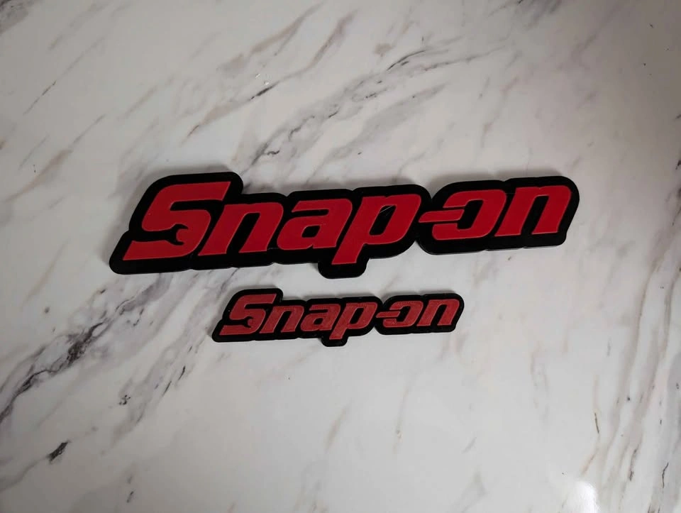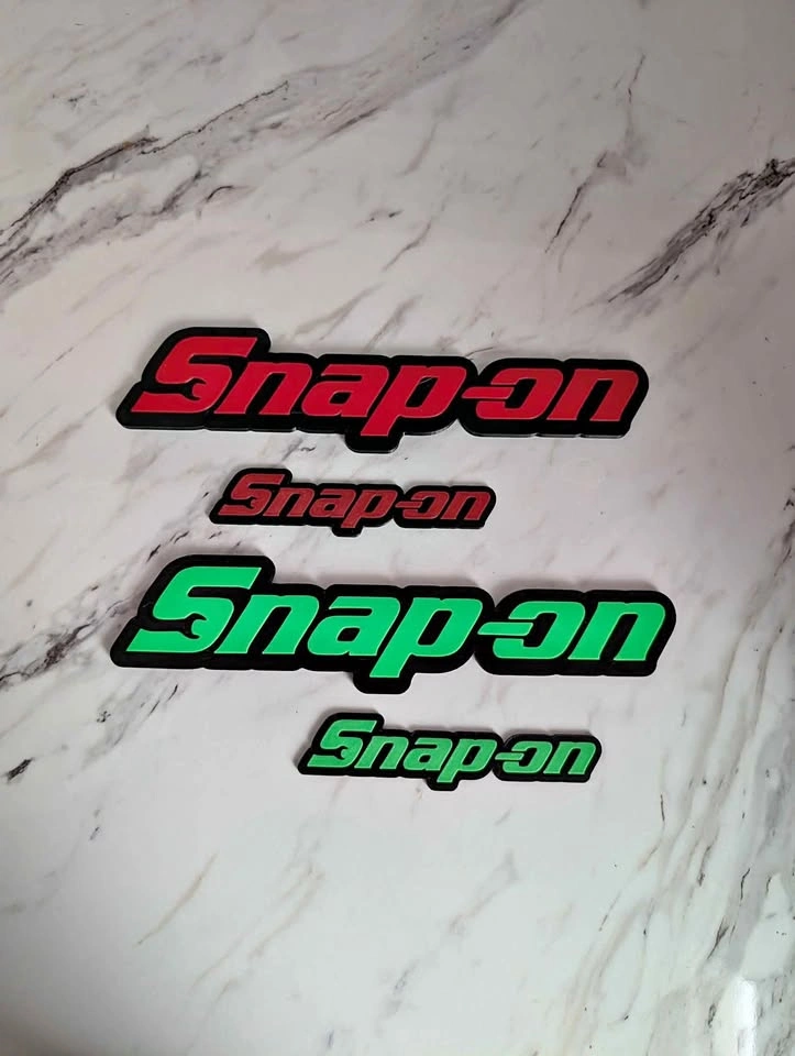 Fully 3D printed Snap on logos for sale. Perfect for a toolbox, garage, etc.