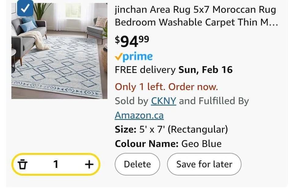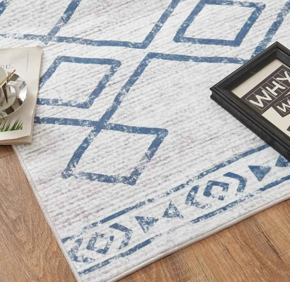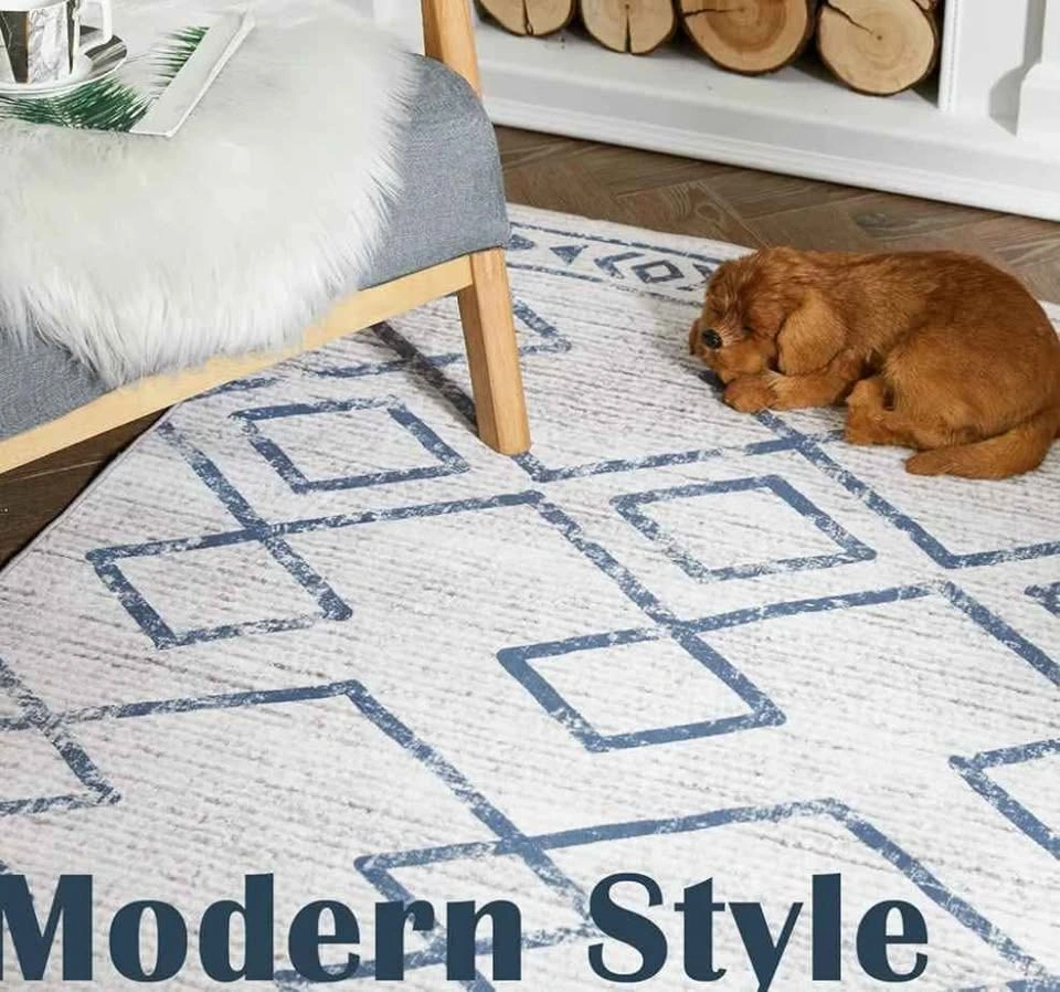 30This 5x7 rug has a designer-inspired look with a cozy, lived-in feel. It's gently used and thoughtfully priced. Size: 5x7 ft (47 x 71 inches) Material: 100% polypropylene Backing: Slip-resistant (rug pad recommended for hard floors) Lightweight: Folds easily for transport Durable: Stain-resistant and family-friendly Maintenance: Spot clean, hand wash, or vacuum Wrinkles: Folds relax within a few days after unfolding Available by appointment only. Check out my other ads for more rugs and comforters!