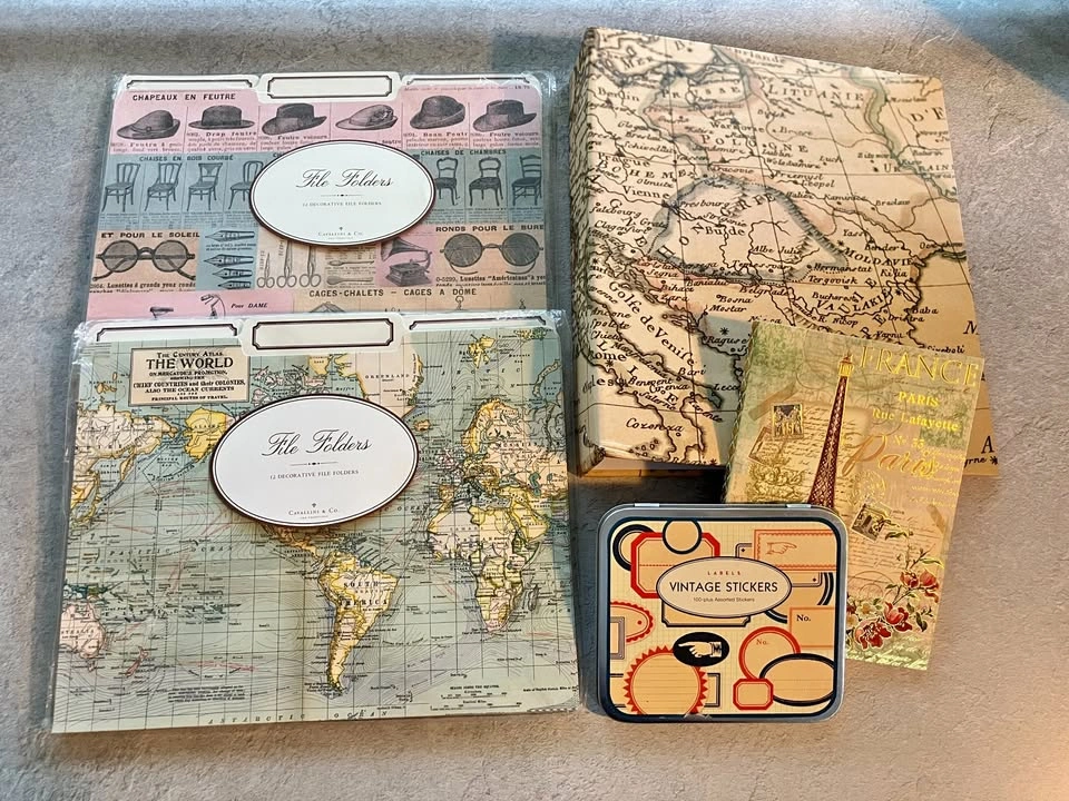 1. World map themed file folders (letter size), by Cavallini & Co. 9 folders.