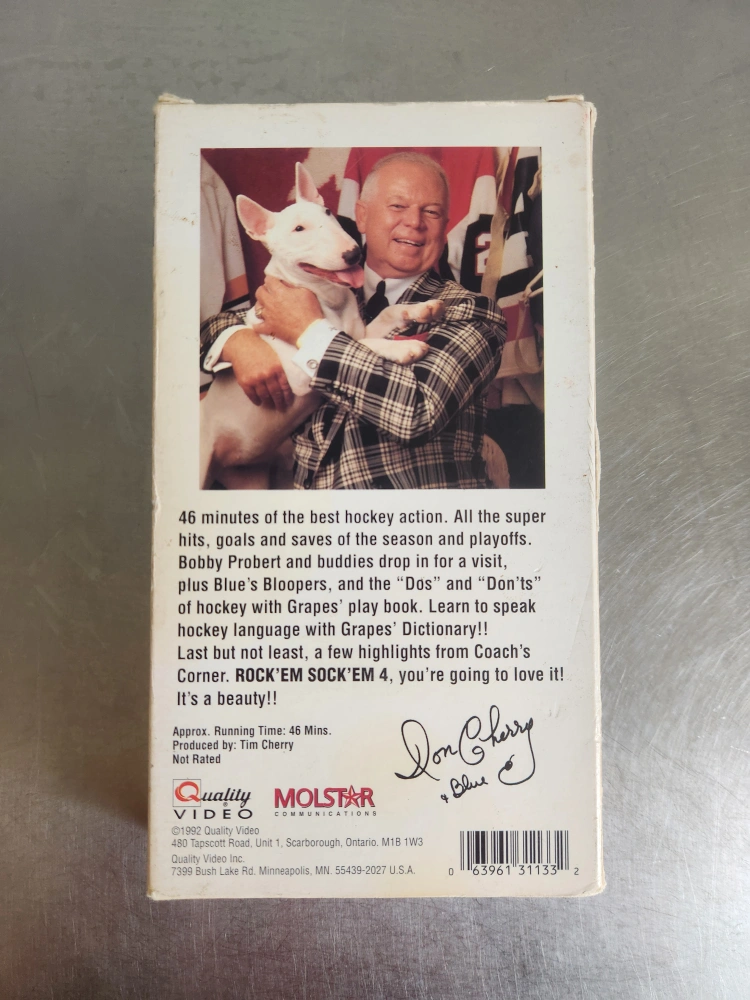 Selling a Rock'em Sock'em 4 VHS tape. It features 46 minutes of hockey action and bloopers. The tape includes segments from Coach's Corner and a hockey language dictionary!