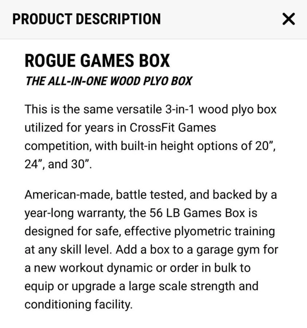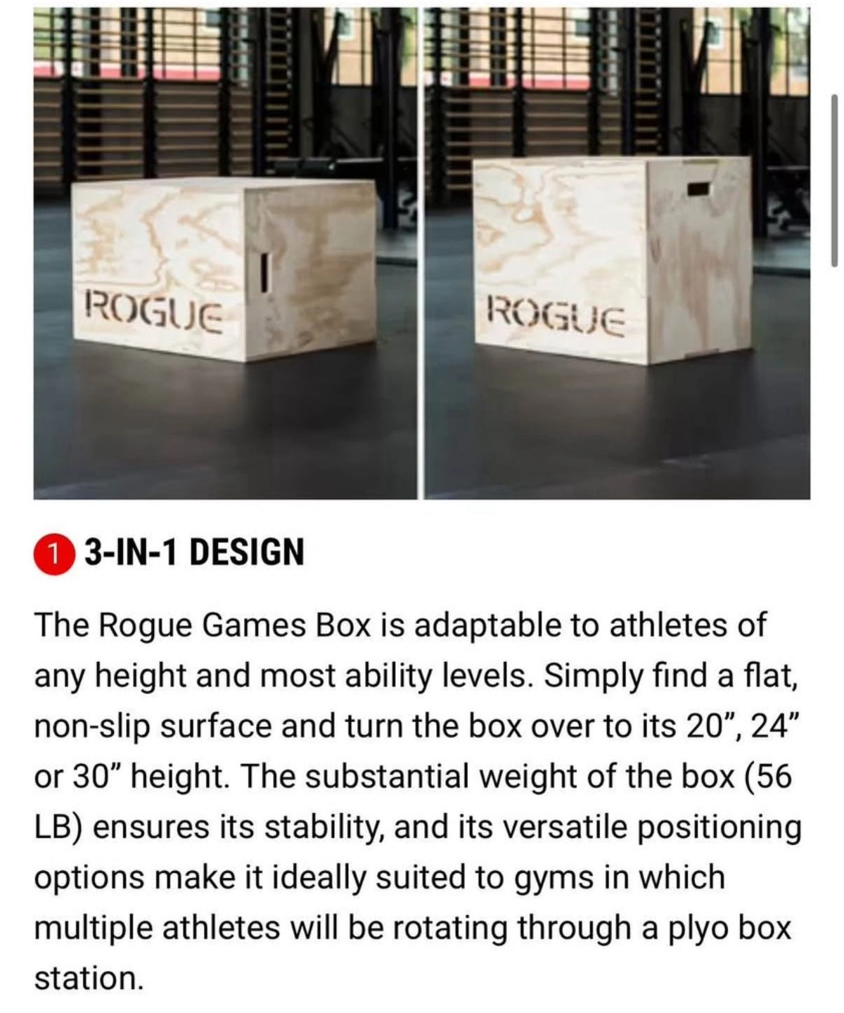 15I may have 2 of these available. 3-in-1 20”- 24”- 30” Box is sturdy and solid and in excellent condition. Activity: Crossfit Brand: Rogue