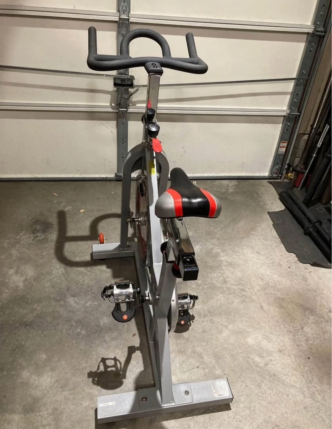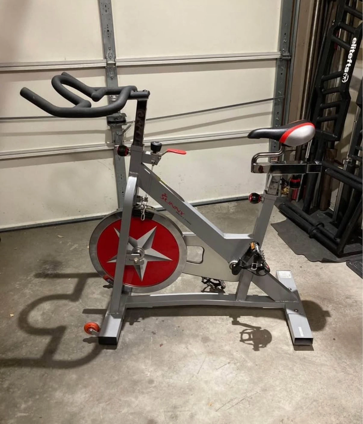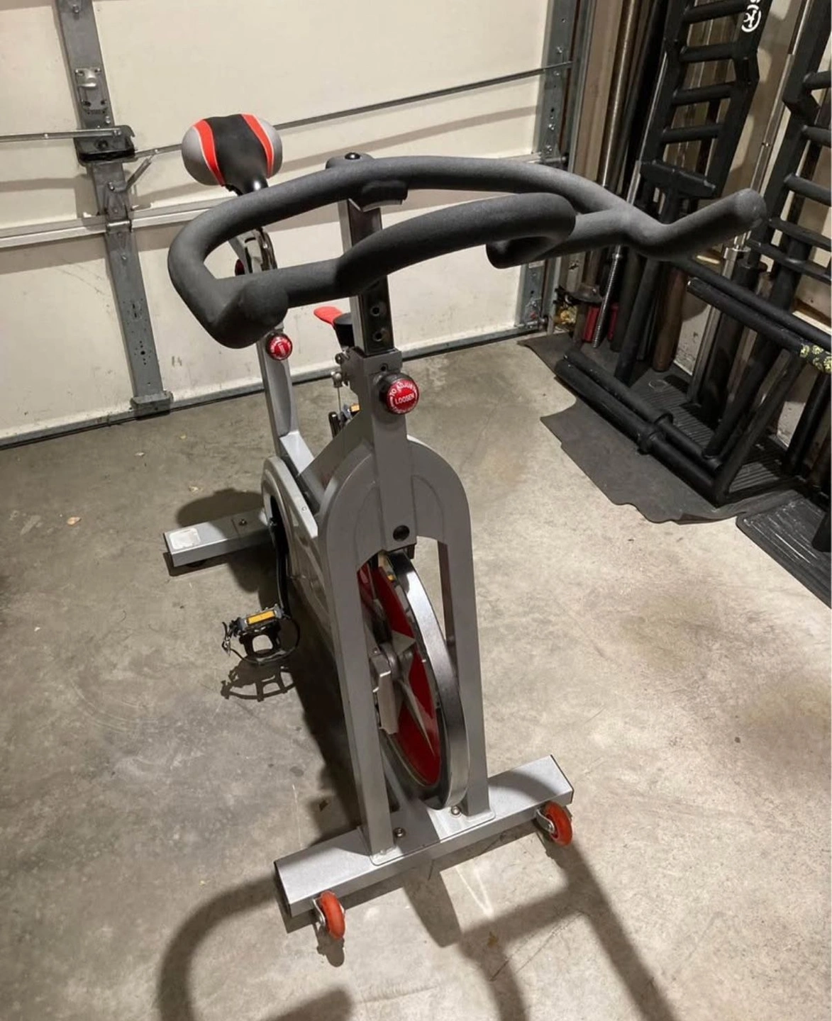 15Sunny Fitness Spin Bike in excellent condition. Everything is fully adjustable from the seat, to the handles, to the tension on the bike. And the best part is, you don’t need a subscription or the Internet or special shoes to use this bike. No programs necessary unlike peloton. Comes with wheels for easy mobility. Brand: Sunny