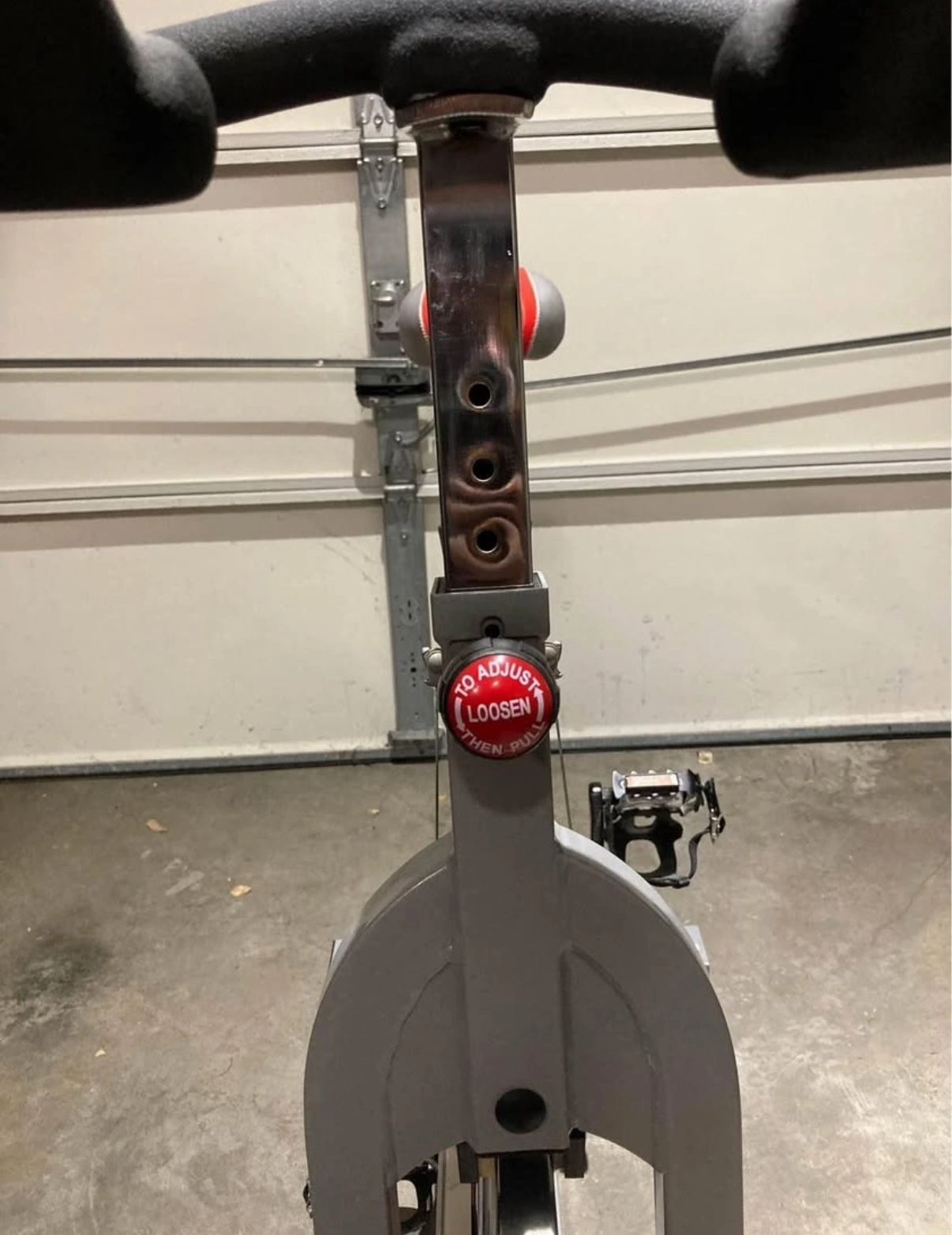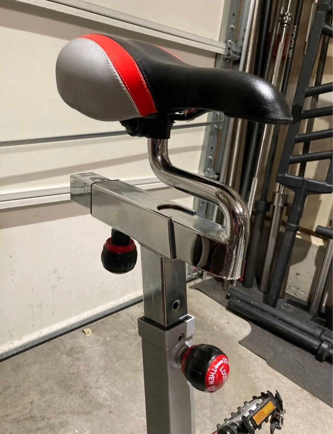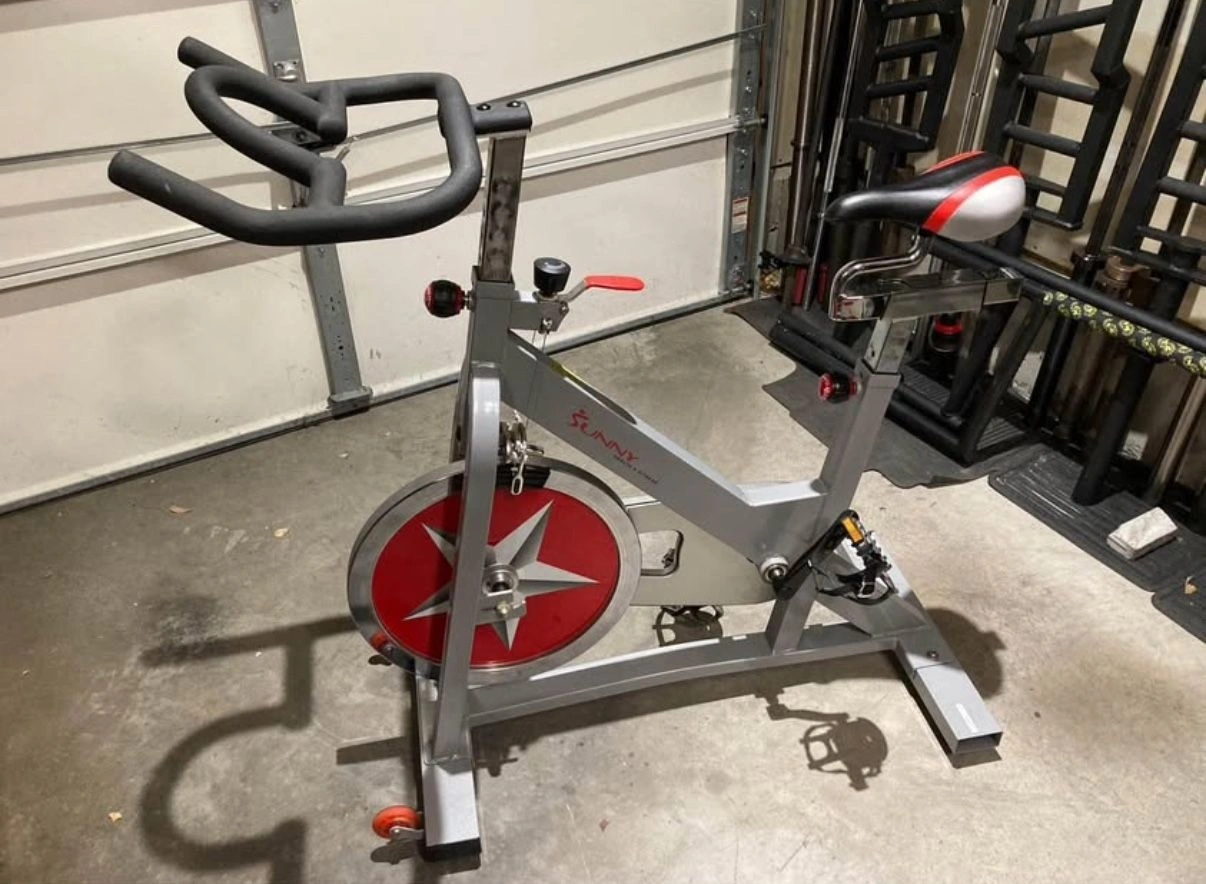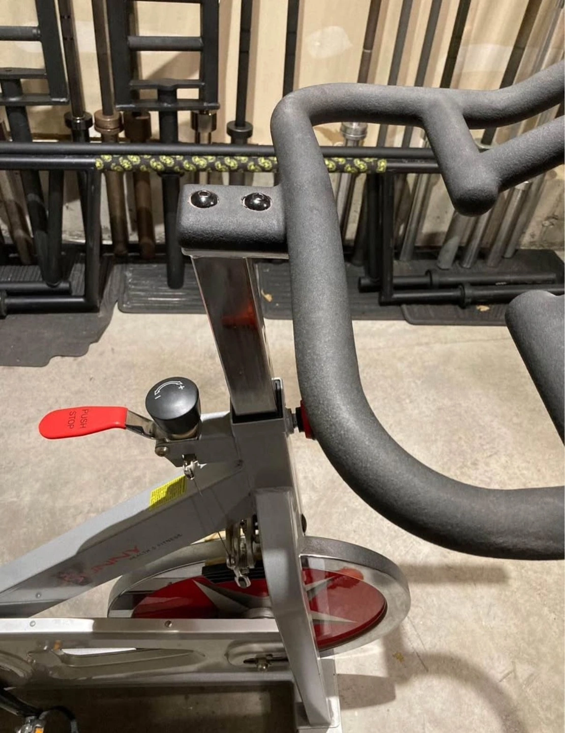 15Sunny Fitness Spin Bike in excellent condition. Everything is fully adjustable from the seat, to the handles, to the tension on the bike. And the best part is, you don’t need a subscription or the Internet or special shoes to use this bike. No programs necessary unlike peloton. Comes with wheels for easy mobility. Brand: Sunny