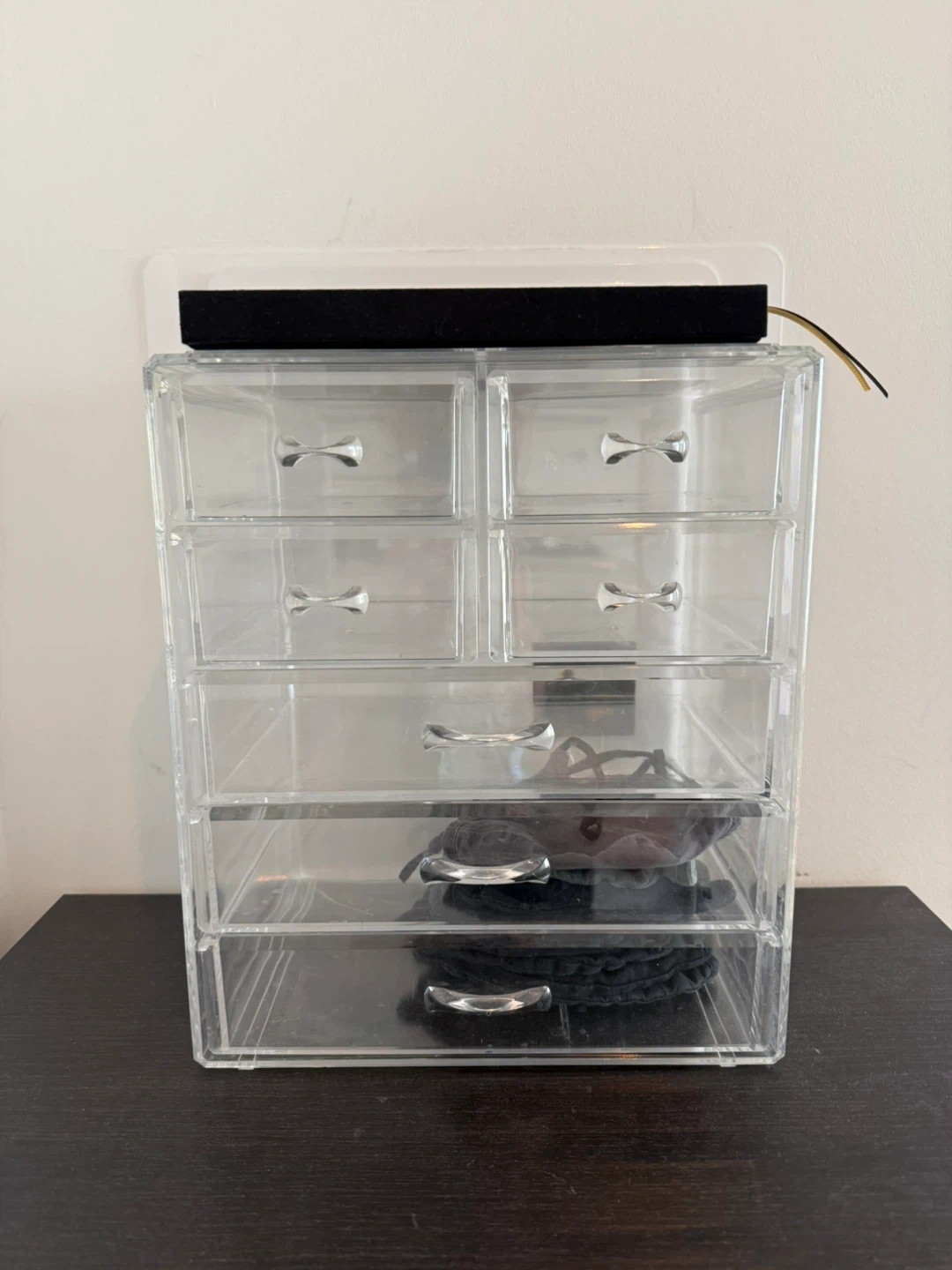 Declutter your space with this clear acrylic makeup organizer! It features multiple drawers to keep your cosmetics, skincare, and accessories neatly stored and easily accessible. Perfect for your vanity or bathroom countertop