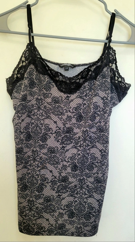 Selling a George brand cami with lace trim! It's a size large and features a pretty floral pattern. Perfect for layering or wearing on its own!