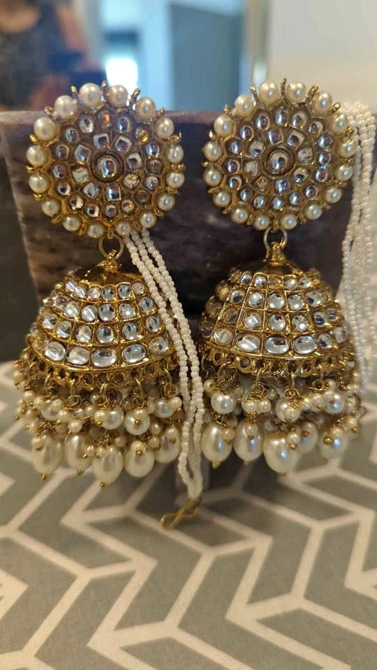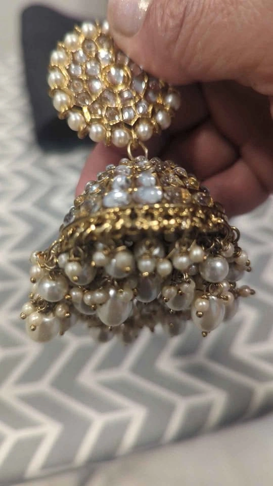 Classic Gold Pearl jhumka earrings. Very good quality. Won't tarnish. Brand New. Pearl run gold color.Just too big for me. Great for wedding events. Cash only. Pick up in Sherwood park.
