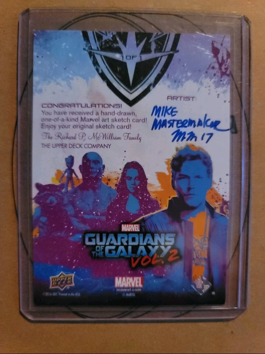 Great collectible for anyone that likes Marvel or and Guardians Of The Galaxy. Hand sketched by artist 1 of 1
