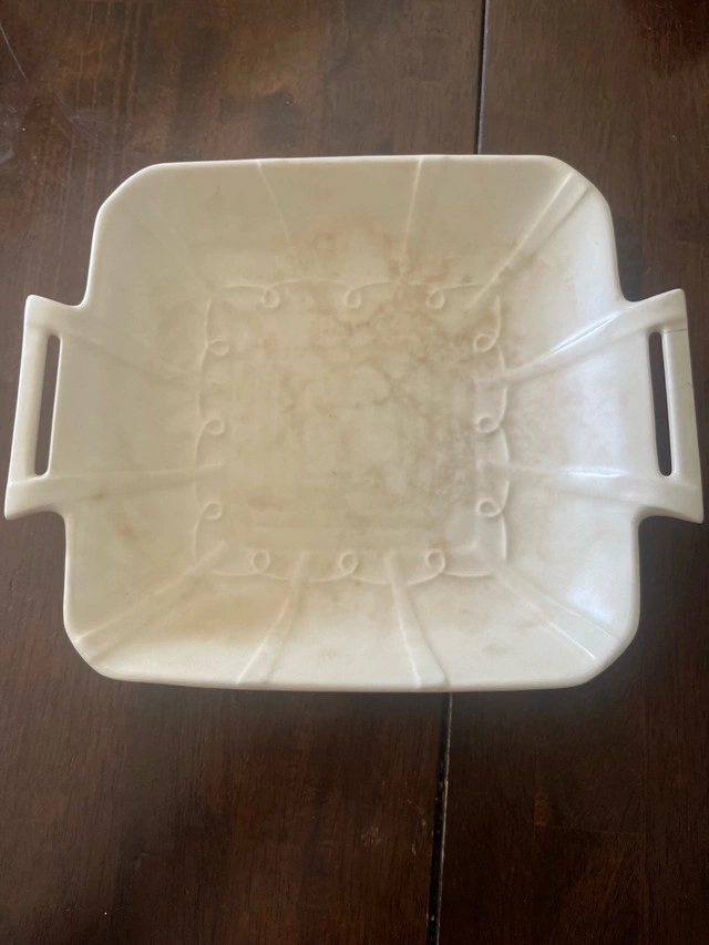 This is a vintage Beswick (numbered #359) England serving dish, perfect for adding a touch of elegance to your dining experience. The dish is in good used condition, with some signs of wear consistent with its age. This serving dish measures approximately 9 inches square. Here are some details: * Brand: Beswick * Origin: England * Material: Ceramic * Colour: Off-white * Size: 9 inches square