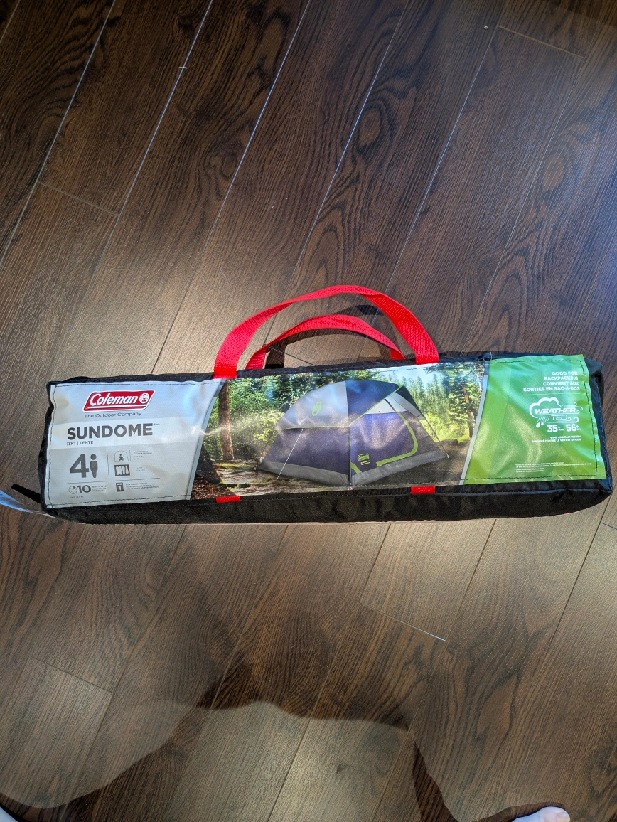 Selling a Coleman Sundome 4-person tent. It's in like-new condition and ready for your next camping trip! It comfortably fits 4 people and has a WeatherTec system to keep you dry. Easy to set up and take down. Perfect for family camping!