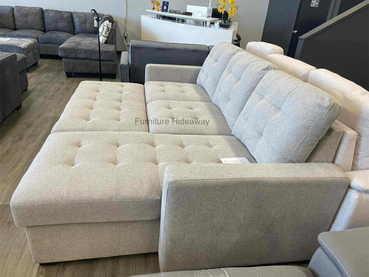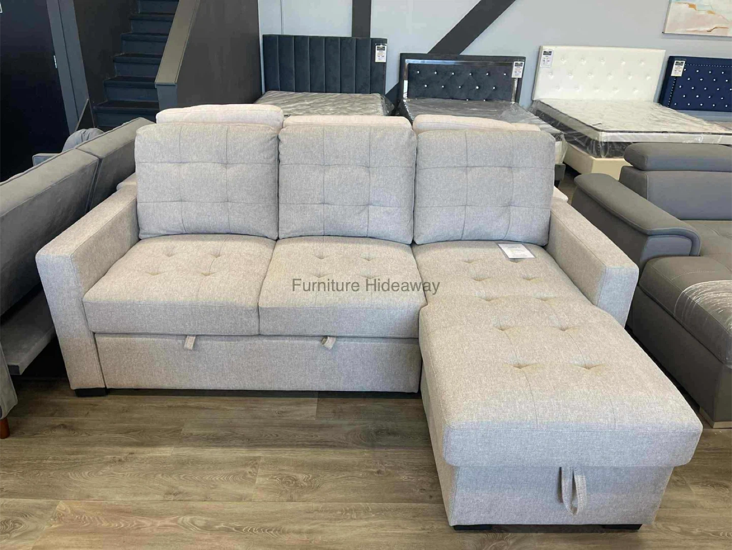 You still have up to today to take advantage of the sale price for just $1,399 for this sleeper sofa with reversible chaise. ✨🛋️ We are open until 6pm today. 📍Unit E 2231 McGarrigle Road ✨Dimension is 90” x 60” ✨ Reversible Chaise with Storage ✨ Cotton Linen Fabric www.furniturehideaway.ca