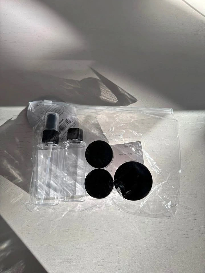 23Includes: spray bottle, shampoo or liquid soap bottle, (3) mini containers. All these are mini travelling size.