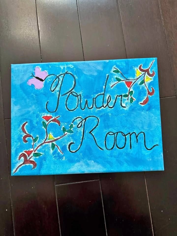 23Handcrafted paint sign - Powder Room Has a hook to hang on the door or walls