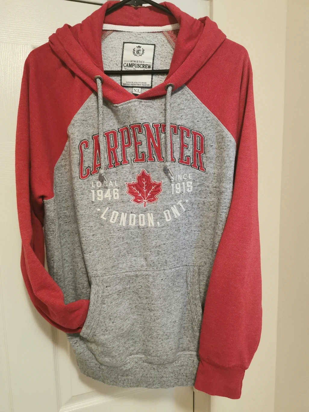 My Carpenter's Union Red & Grey Hoodie by Campus Crew is in excellent condition and would be perfect for; Campfires π₯, Hiking π₯Ύ, Fishing π£ and of course any work you have around your home πͺπ¨π‘ Get it for this Summer Season's cool evenings!! It says XL, but will most likely fit a person who wears a Large Size, as well! Add it to your wardrobe today!!