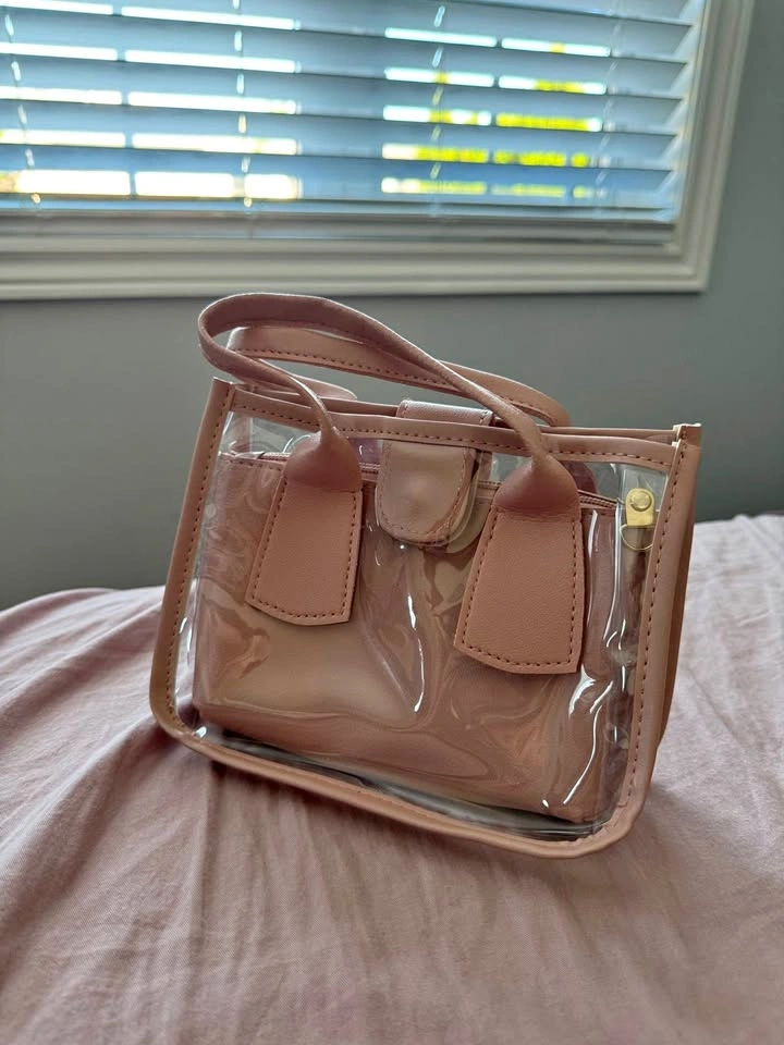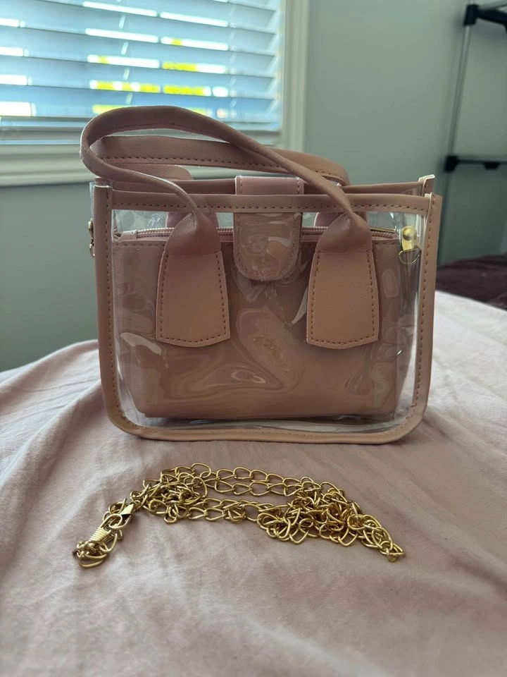 23Cute light pink see through purse with extra strap to use as a crossbody purse