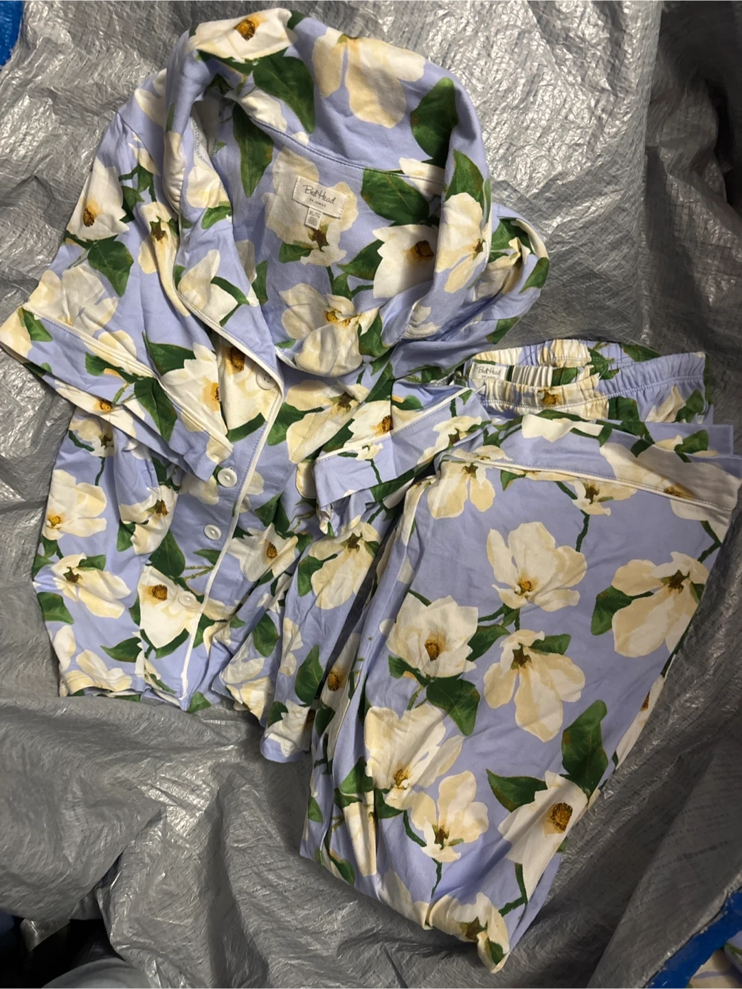 This beautiful pajama set, features a lovely floral print. It's super comfy and perfect for a good night's sleep! The set is in great condition and ready for a new home