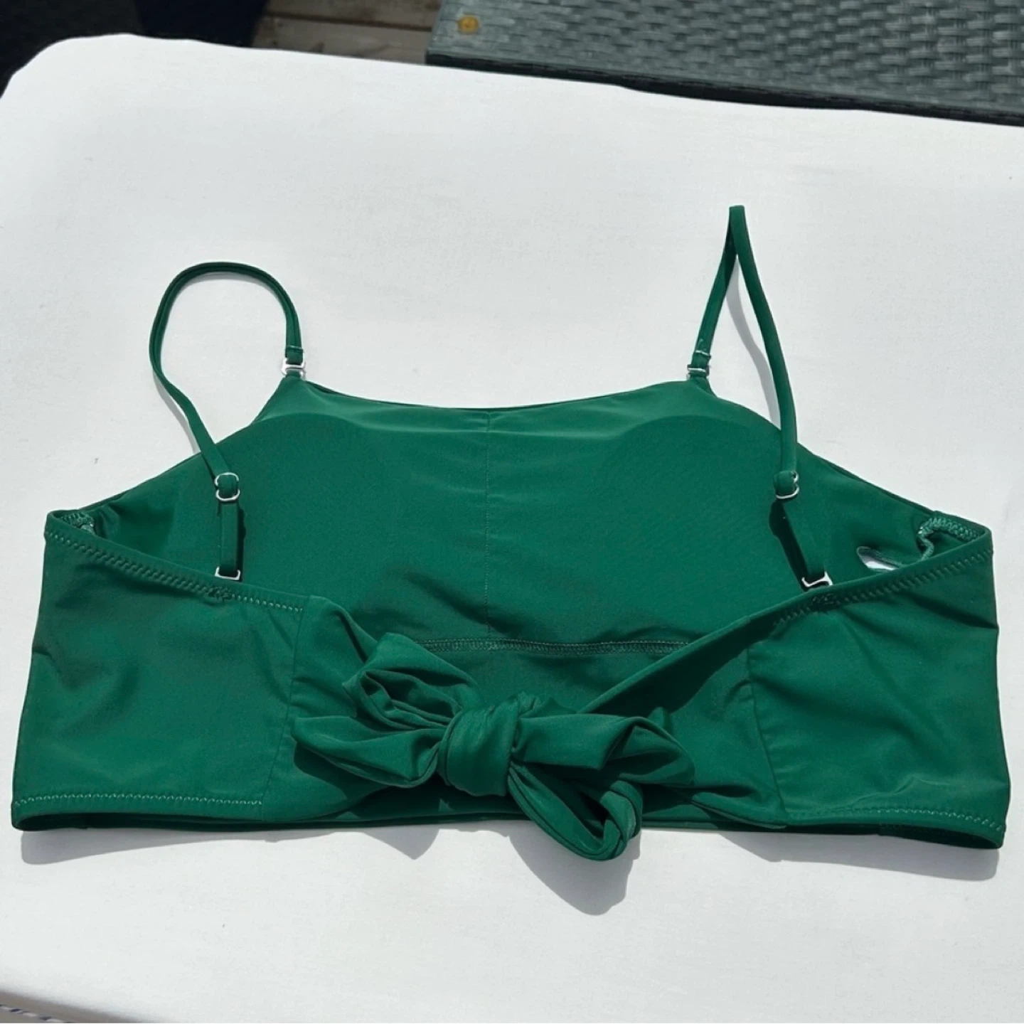 New in package! Forest green longline tie back bikini top from Avanova. Adjustable straps and removable padding at chest. New, never worn. Women’s size M. See photos for measurements. Cross posted. Winnipeg - Pick up only (Located 2 blocks west of Polo Park). Shipping options available through other platforms message me for details.