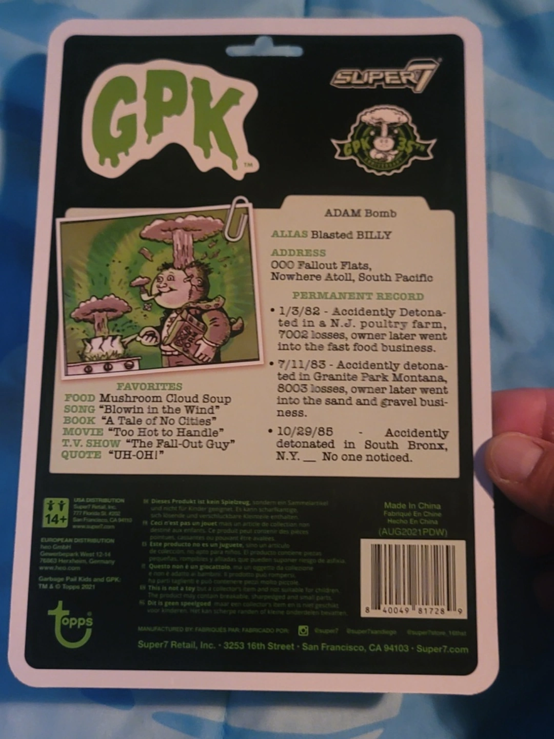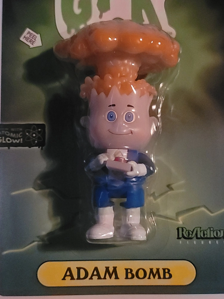 Selling a Garbage Pail Kids (GPK) Adam Bomb ReAction figure by Super7! This collectible figure features Adam Bomb with an atomic glow. A fun addition to any collection!