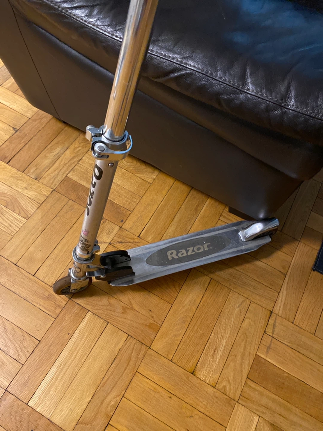 Selling a used Razor scooter. It's perfect for getting around the neighbourhood or just having some fun at the park. It has some wear and tear, but it's still in good working condition.