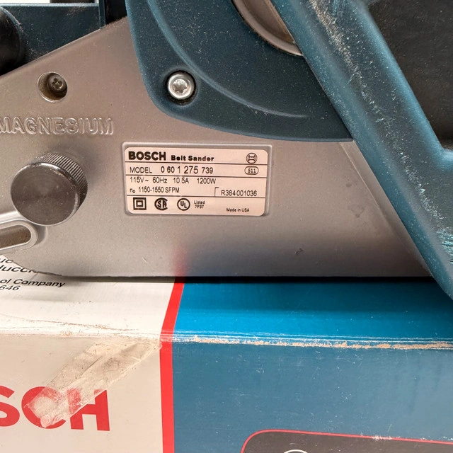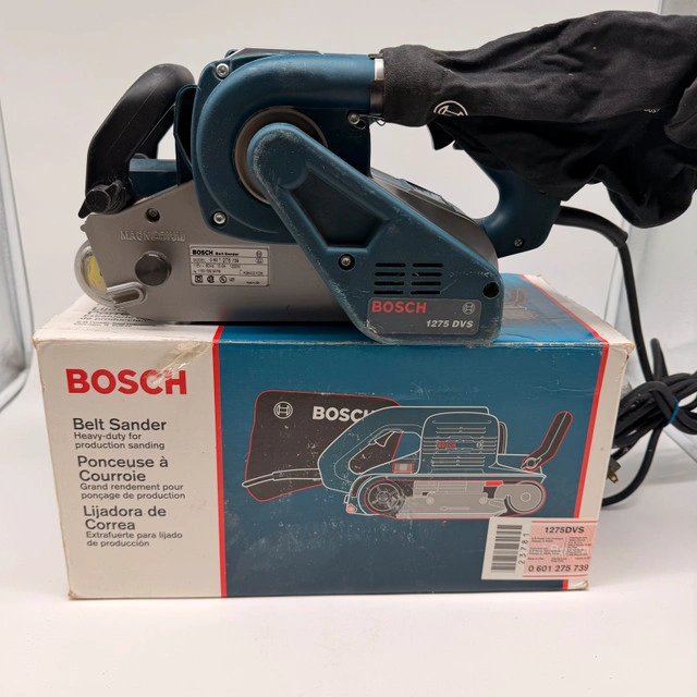 19Sanding enthusiasts, check out this Bosch Belt Sander! This tool is in good used condition and ready to tackle your woodworking projects. It features a robust build and is perfect for both DIYers and professionals. I am estimating it to be a 1200W model. Here are some details: * Brand: Bosch * Type: Belt Sander * Model: Likely a 1275DVS (based on box, see photos) * Condition: Used, in good working order * Power: 1200W Don't miss out – grab it before it's gone! If you're reading this, yes, it's still available!