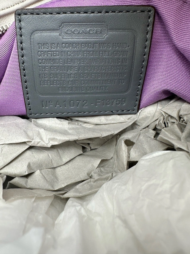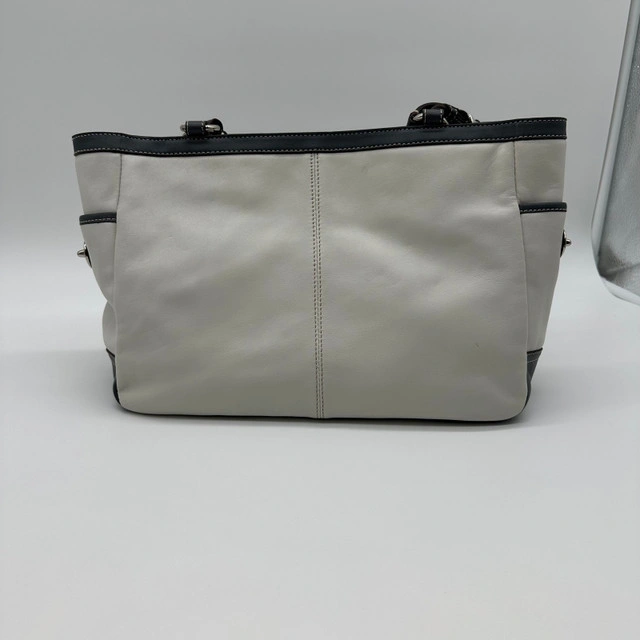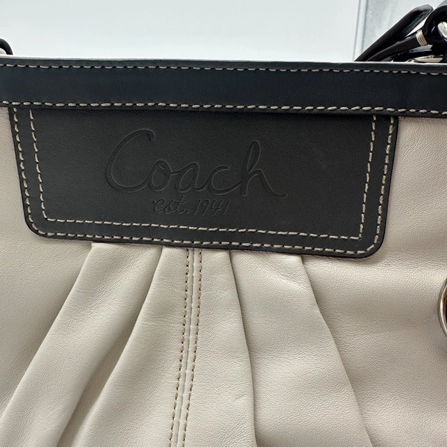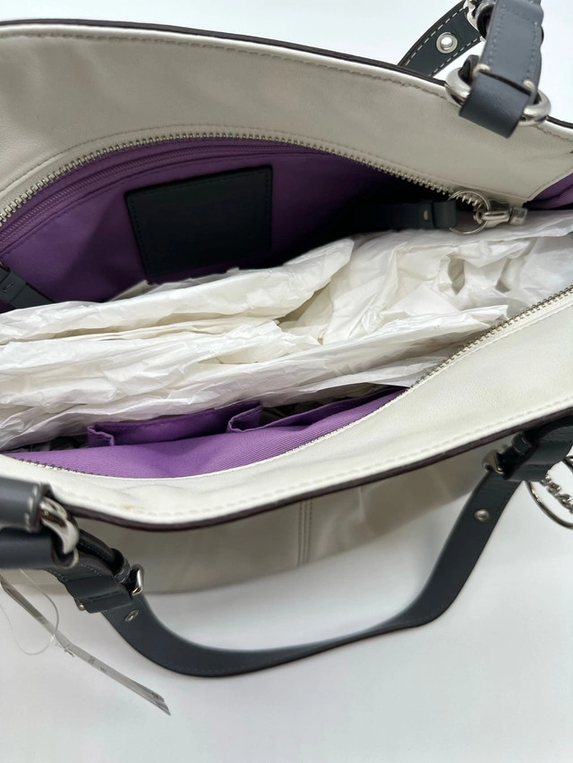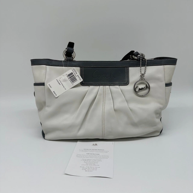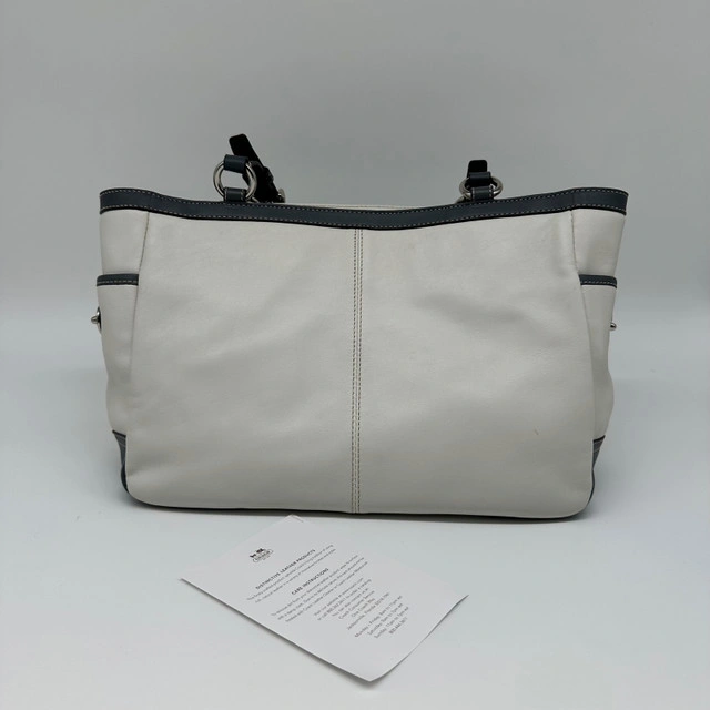 19This is a stylish Coach Gallery East West tote shoulder purse, crafted from white and gray leather. A fashionable and functional accessory, it's ideal for everyday use. This purse has been previously enjoyed, so it has some signs of wear, but is still in good condition and ready for a new home! Features: * Brand: Coach * Style: Gallery East West Tote * Material: Leather * Colour: White and Gray * Hardware: Silver * Closure: Zip-top Closure * Interior Pockets: One zip pocket, two slip pockets * Exterior Pockets: Two side pockets * Dimensions: Approximately 12" (L) x 8" (H) x 4" If the ad is still up, it's still available!