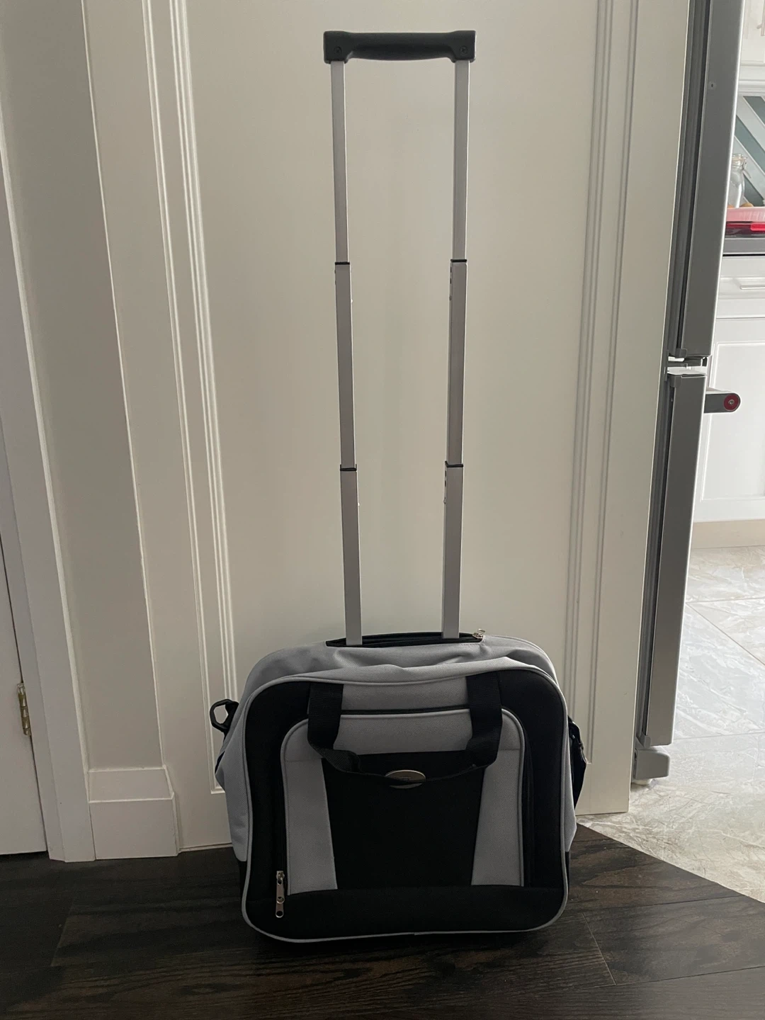 Selling a brand new rolling carry-on laptop bag ready for your next trip! Features a retractable handle and multiple compartments for easy organization.