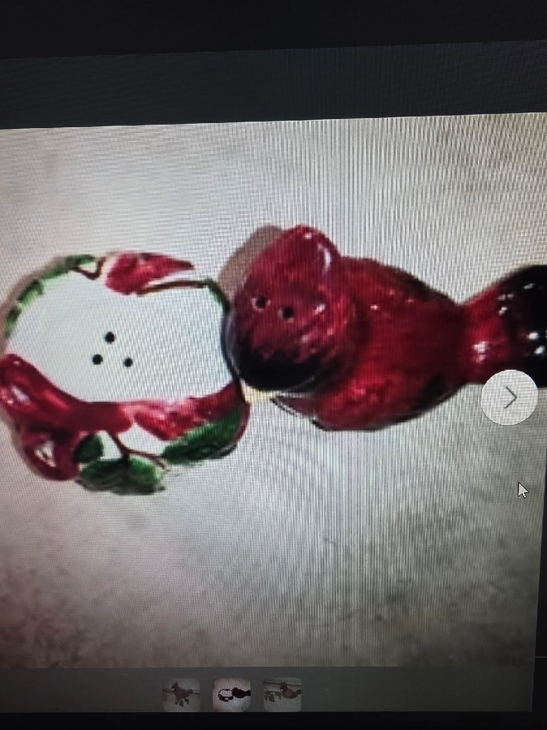 10Here's a charming cardinal bird salt and pepper shaker set! It's a delightful addition to any kitchen or dining collection. The set features a vibrant red cardinal perched on a branch with green leaves. Perfect for adding a touch of nature to your table! pick up clareview cash only