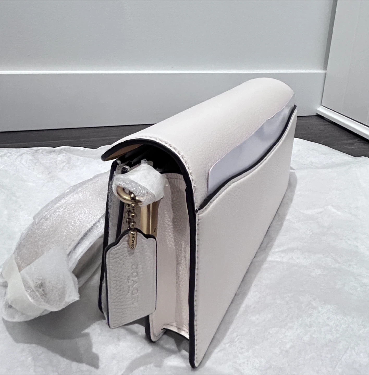 Selling a brand new Coach Tabby 26 shoulder bag in a beautiful chalk colour! This timeless classic is made from refined pebble leather and features the iconic Coach 'C' hardware. It's a versatile bag that can be carried as a shoulder bag or worn as a crossbody with the detachable strap. Perfect for adding a touch of elegance to any outfit! Original price is 550CAD plus tax !